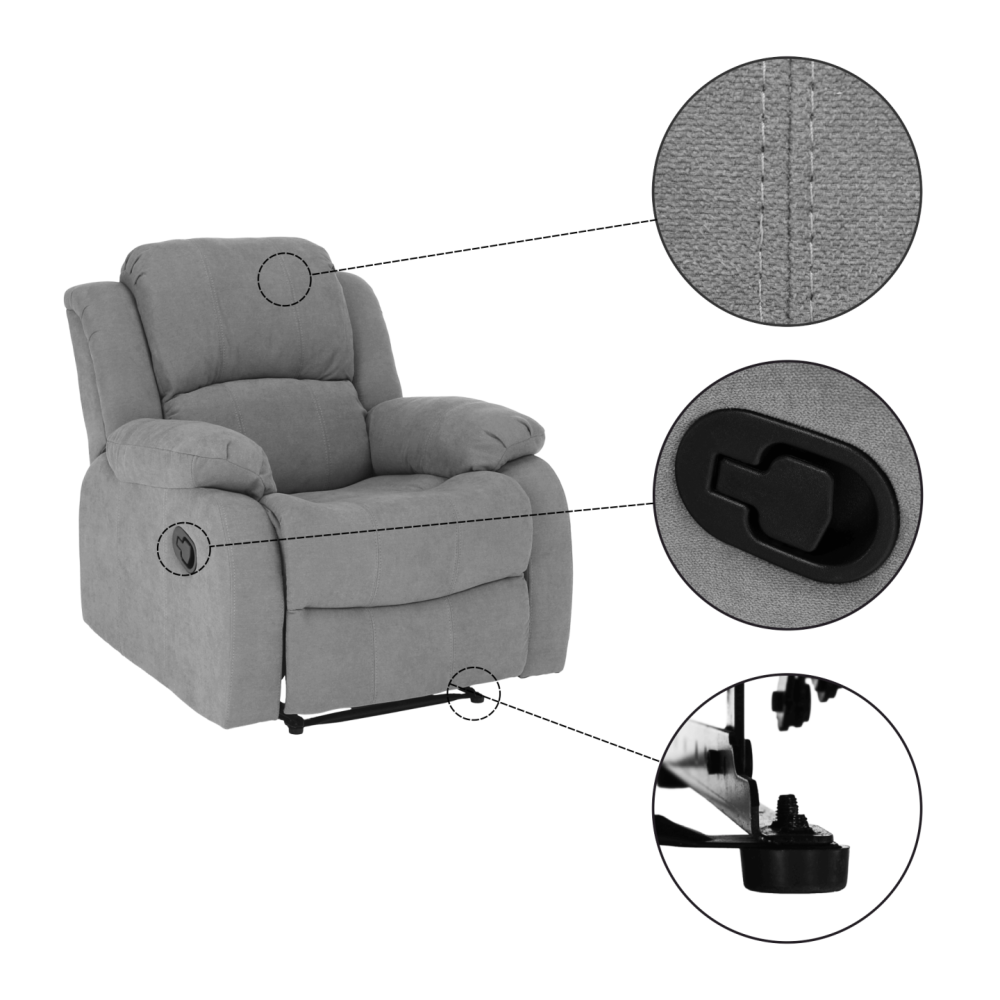 Křeslo je čalouněné kvalitní látkou ve světle šedém provedení. Díky tomu, že je mechanicky polohovací vám dopřeje patřičný komfort který si zasloužíte. Toto pohodlné křeslo lze umístit kdekoliv, kde oceníte jeho relaxační vlastnosti. Proměňte křeslo na pohodlné a komfortní lehátko díky jednoduchému mechanismu. Podnož vysunete pomocí páčky na boční straně křesla. Opěradlo sklopíte jemným potlačením dozadu. Když opět zatlačíte, opěradlo se vrátí do původní polohy. Podnož sklopíte tak, že do ní zatlačíte nohama. Výborně se hodí do obývacího pokoje, pracovny nebo do ložnice. Objednávejte ještě dnes. Relaxační křeslo ASKOY je připraveno a čeká na vaše pokyny.