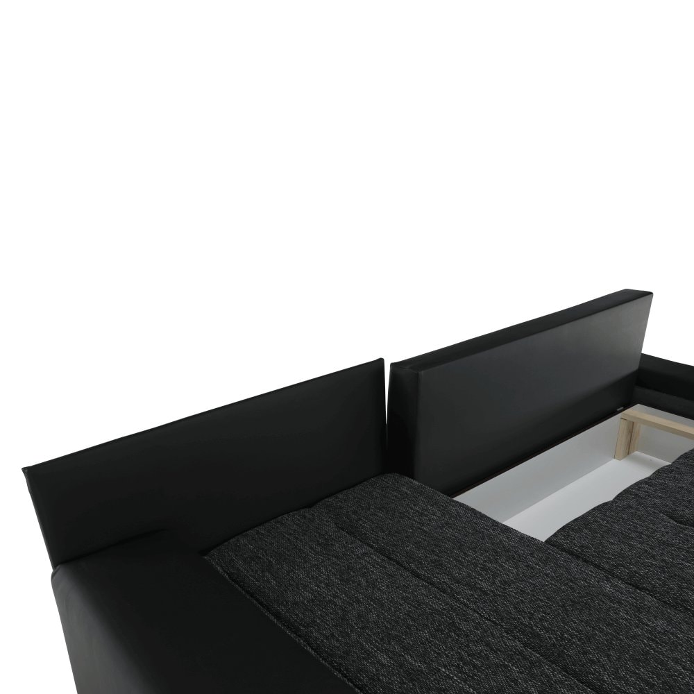 Univerzální (L / P) rohová rozkládací sedací souprava s úložným prostorem Materiál: látka Berlin/ ekokůže Oděruodolnost textilie berlin podle testu Martindale: 55 000 oděrů Oděruodolnost ekokůže podle testu Martindale: 100 000 oděrů Barva: černá Rozměry (ŠxHxV): 257x180x83 cm, spaní: (ŠxD): 149x206…