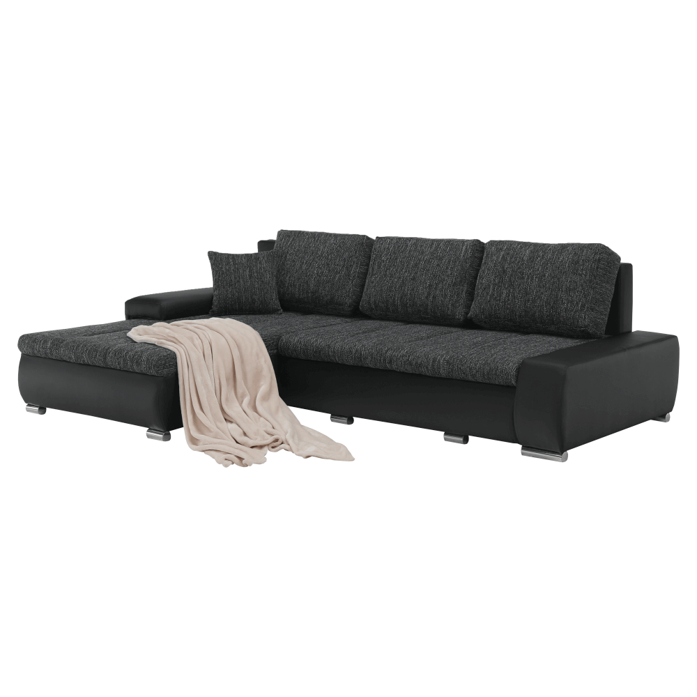Rohová sedací souprava, černá/černý melír, TRAMP