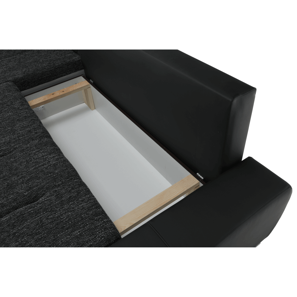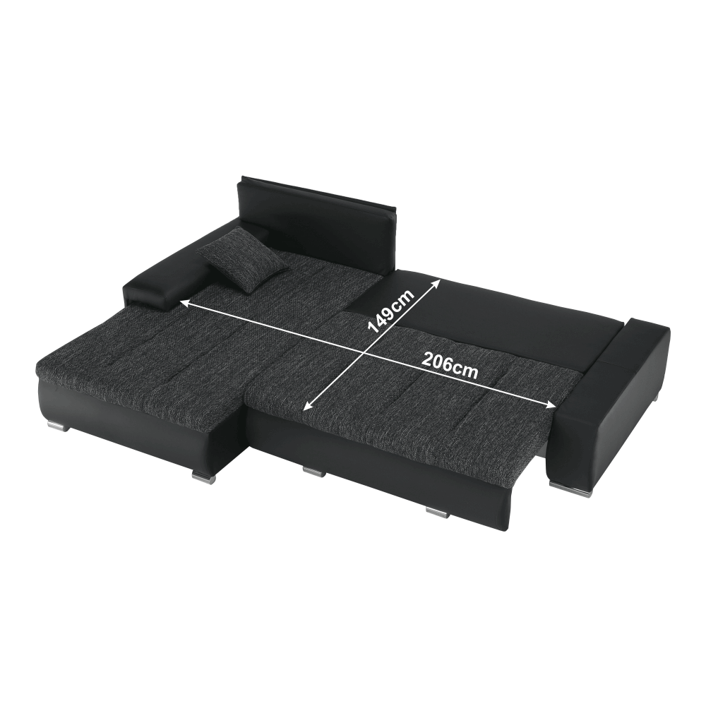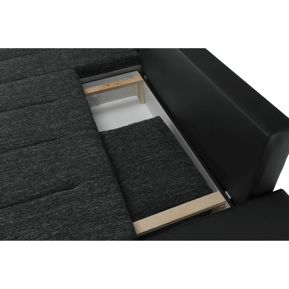 Univerzální (L / P) rohová rozkládací sedací souprava s úložným prostorem Materiál: látka Berlin/ ekokůže Oděruodolnost textilie berlin podle testu Martindale: 55 000 oděrů Oděruodolnost ekokůže podle testu Martindale: 100 000 oděrů Barva: černá Rozměry (ŠxHxV): 257x180x83 cm, spaní: (ŠxD): 149x206…