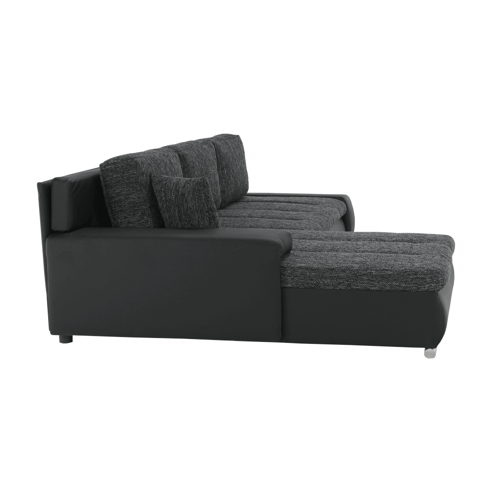 edací část je čalouněna v látce v odstínu černý melír. Je rozkládací, za několik vteřin ji dokážete změnit na lůžko.