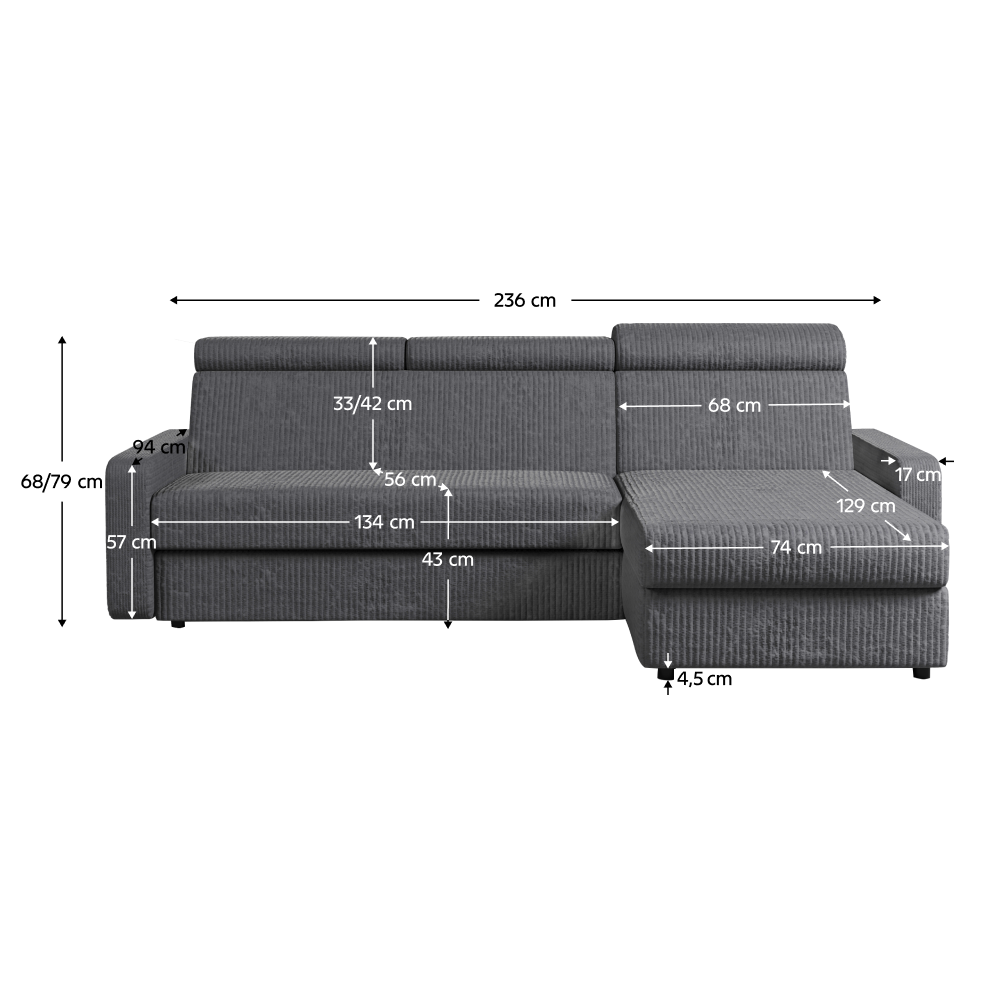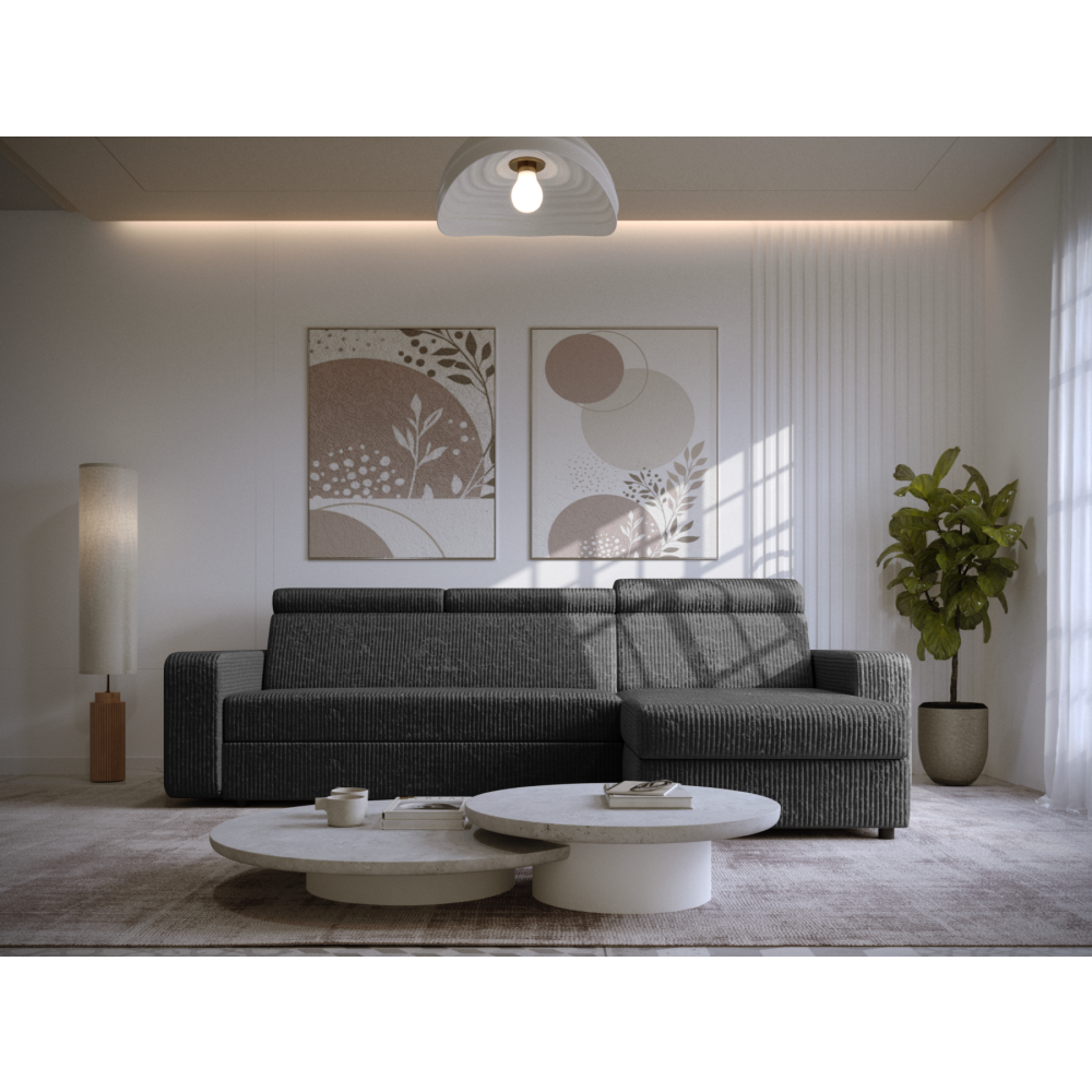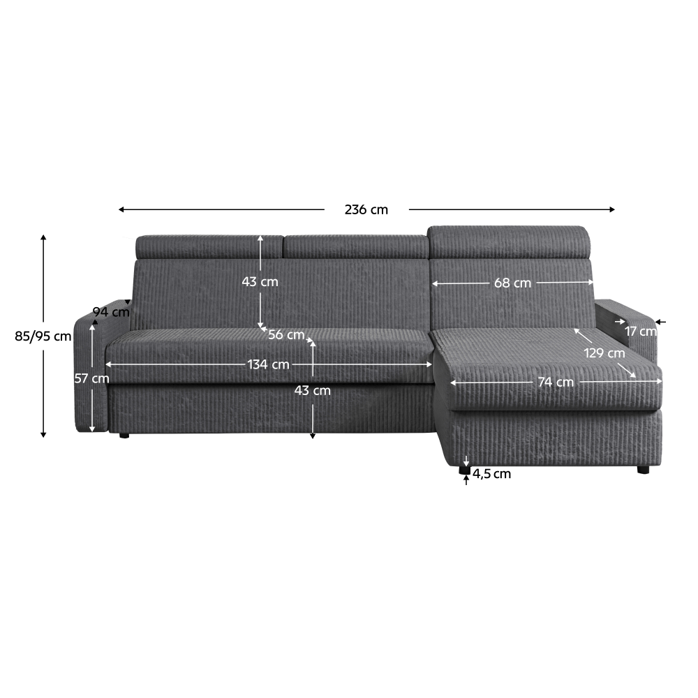 Čalouněná je šedou látkou Poso, která dokonale zapadne do každého interiéru. To, že je celočalouněná, ji předurčuje k umístění do prostoru. Disponuje praktickou rozkládací funkcí, která sedačku jednoduše přemění na prostorné lůžko, ideální pro nečekané hosty. S úložným prostorem pro odkládání přikrývek a polštářů nabízí maximální využitelnost bez kompromisů v designu. Stabilitu zajišťují plastové nožičky v elegantní černé barvě. Polohovatelné opěrky hlavy či výplň v podobě vlnovcových pružin a pur pěna poskytnou maximální komfort při každém sezení. Dopřejte si dokonalý relax ve stylové sedačce MORA ROH, která bude ozdobou vašeho domova.