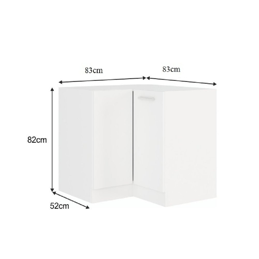 Rohová spodní skříňka 89x89 DN 1F BB je s dvířky. Za dvířky najdete polici. Skříňka je dodávána bez pracovní desky.