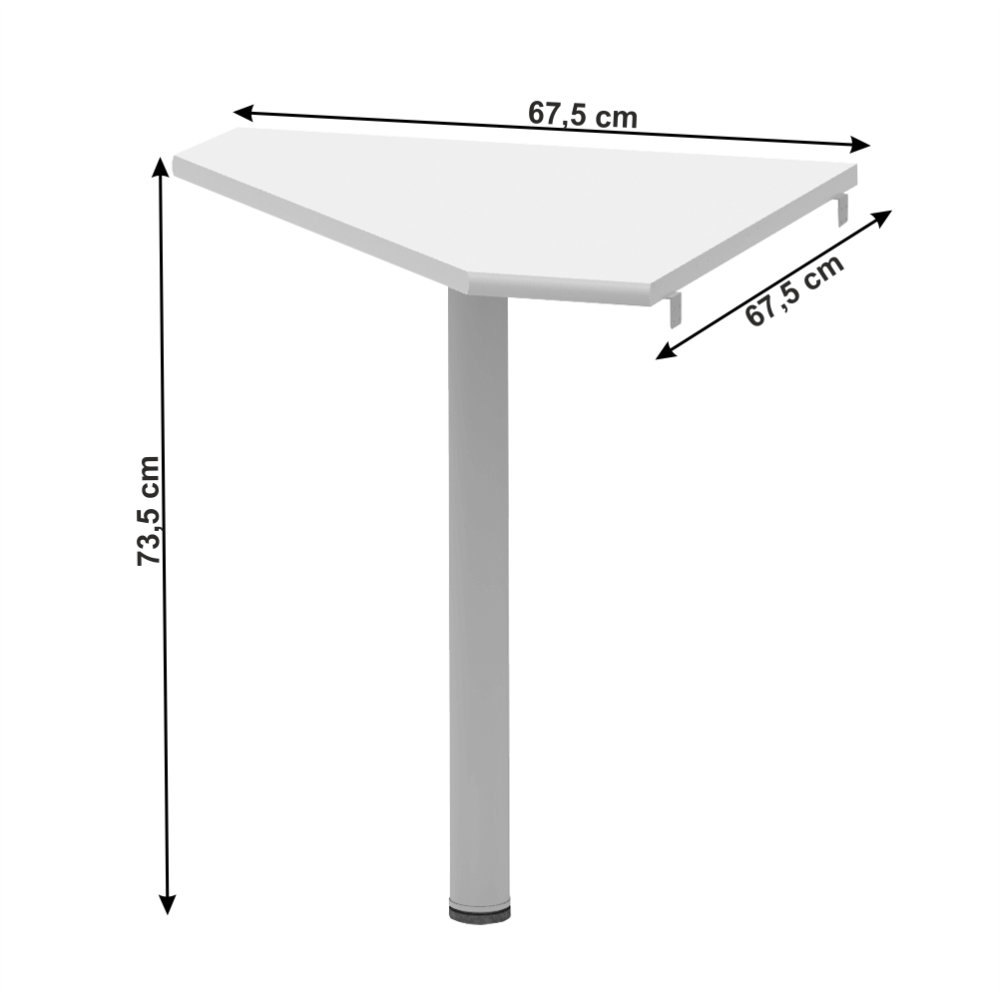 Rohový psací stolek JOHAN NEW 06 spojí dva psací stoly a vytvoří tak pohodlný a prostorný pracovní koutek. Je možné použít ho také jako samostatný stůl, například v menších místnostech. Je vyroben z kvalitní DTD laminované v bílém barevném provedení. Podpůrná noha je z kovu s hliníkovou povrchovou úpravou.