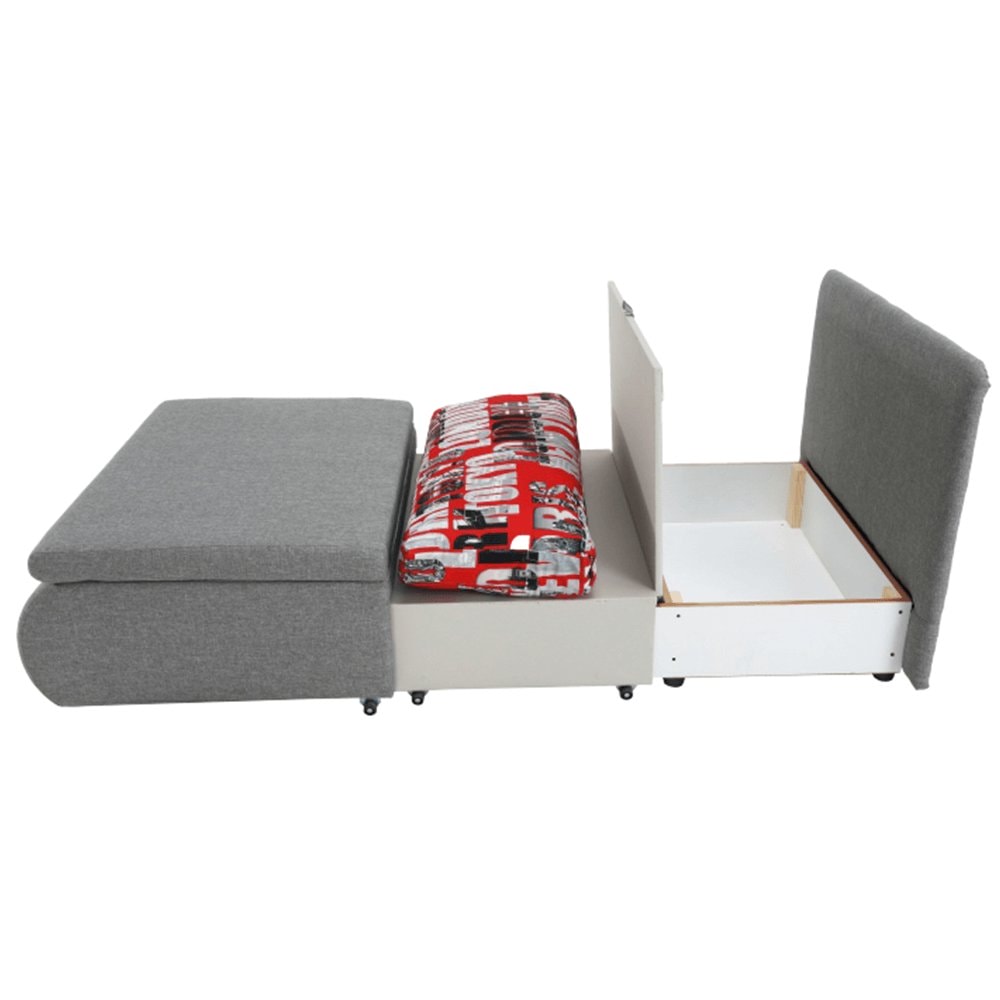 ;"Materiál: látka Savana Oděruodolnost textilie podle testu Martindale: 80 000 oděrek Barva: šedá 21 / vzor Rozměry (ŠxHxV): 100x87x90 cm Plocha na spaní (ŠxD): 100x190 cm Výška sedu: 45 cm Výška spodního prostoru od podlahy: 5 cm Hloubka sedu s polštářem: 55 cm Hloubka sedu bez polštáře:…