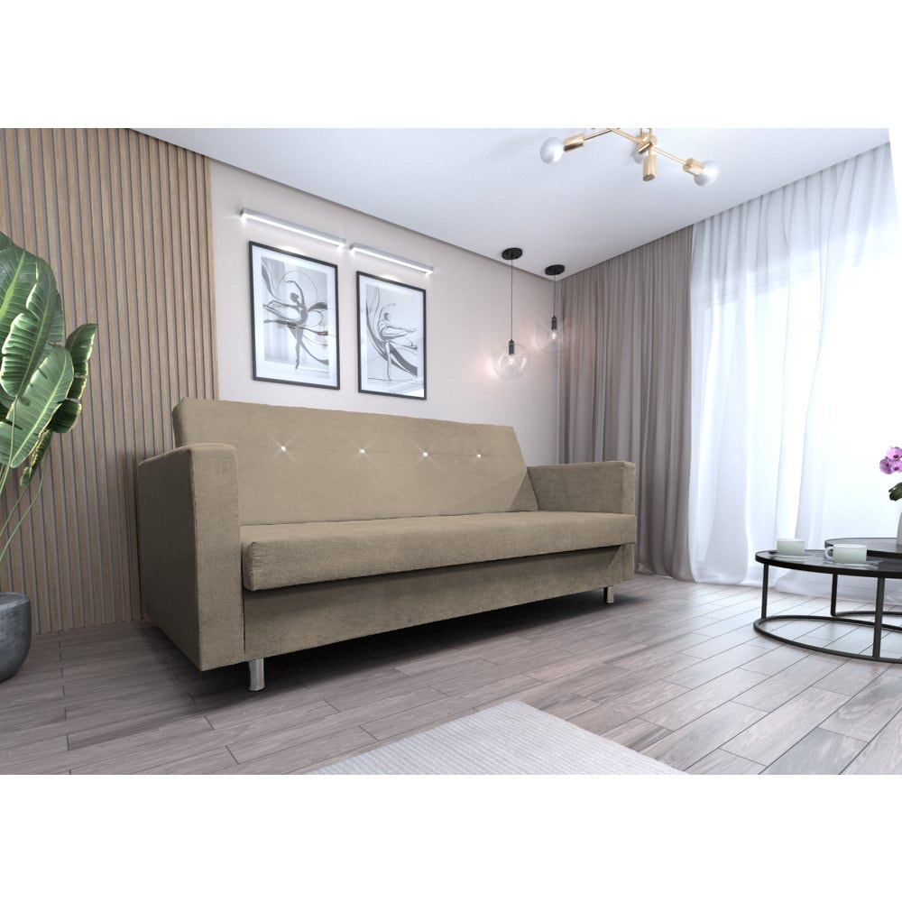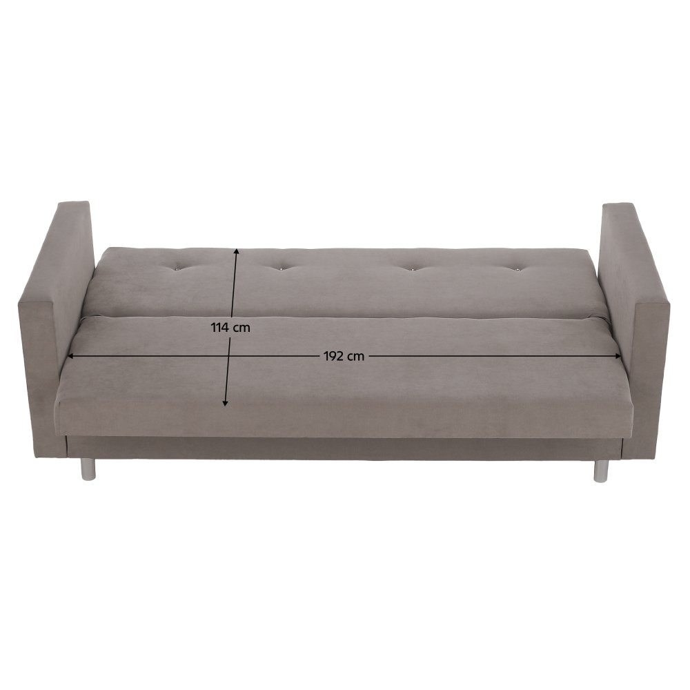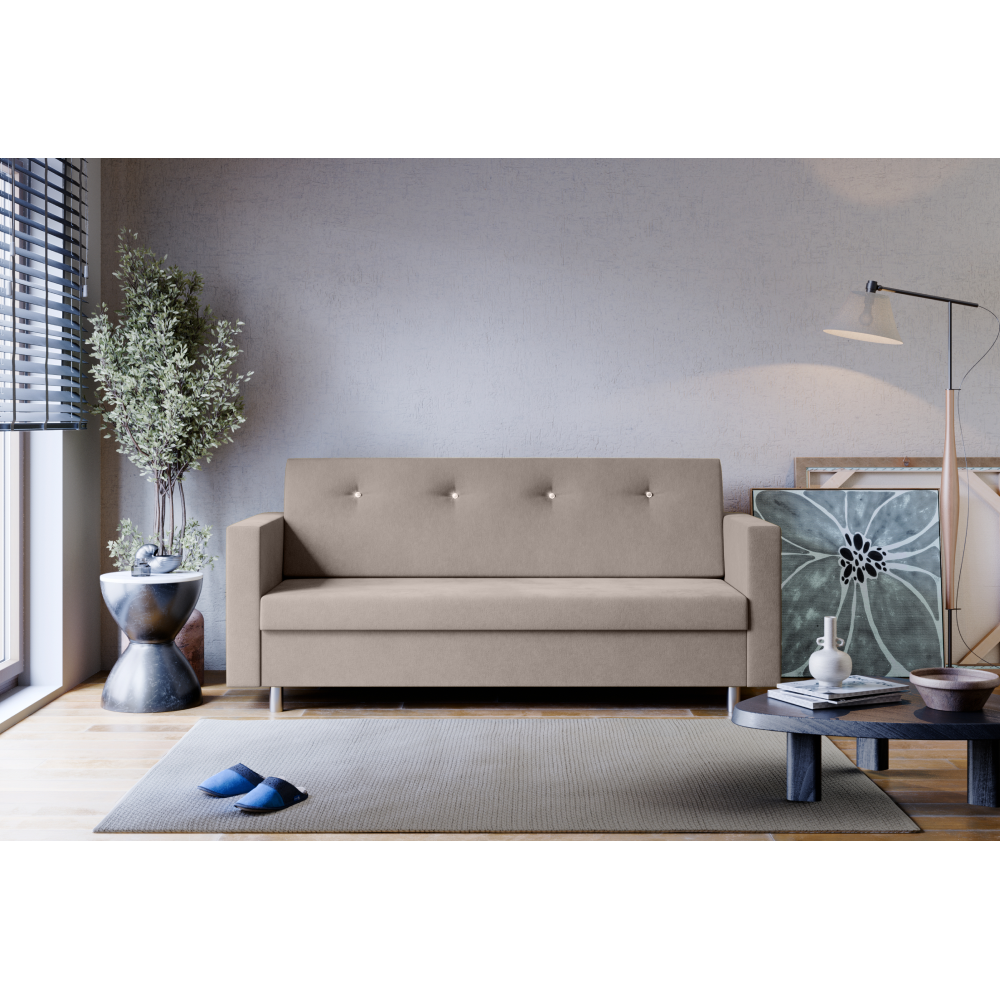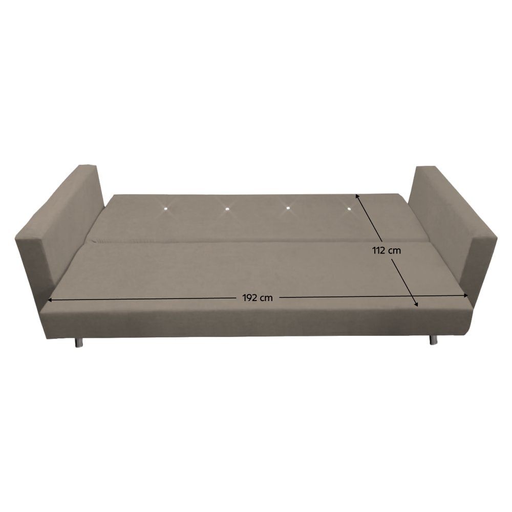 Materiál: látka Soro 23 Oděruodolnost látky podle testu Martindale: 90 000 oděrů Barva: šedobéžová Taupe Rozměry (ŠxHxV): 192x80x100 cm Plocha na spaní (ŠxD): 112x192 cm Výška sedu: 37 cm Hloubka sedu: 57 cm Na nožičkách Materiál nožiček: plast Barva nožiček: stříbrná Výška spodního prostoru od…