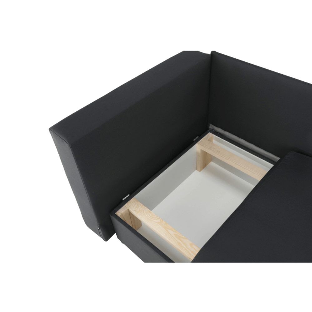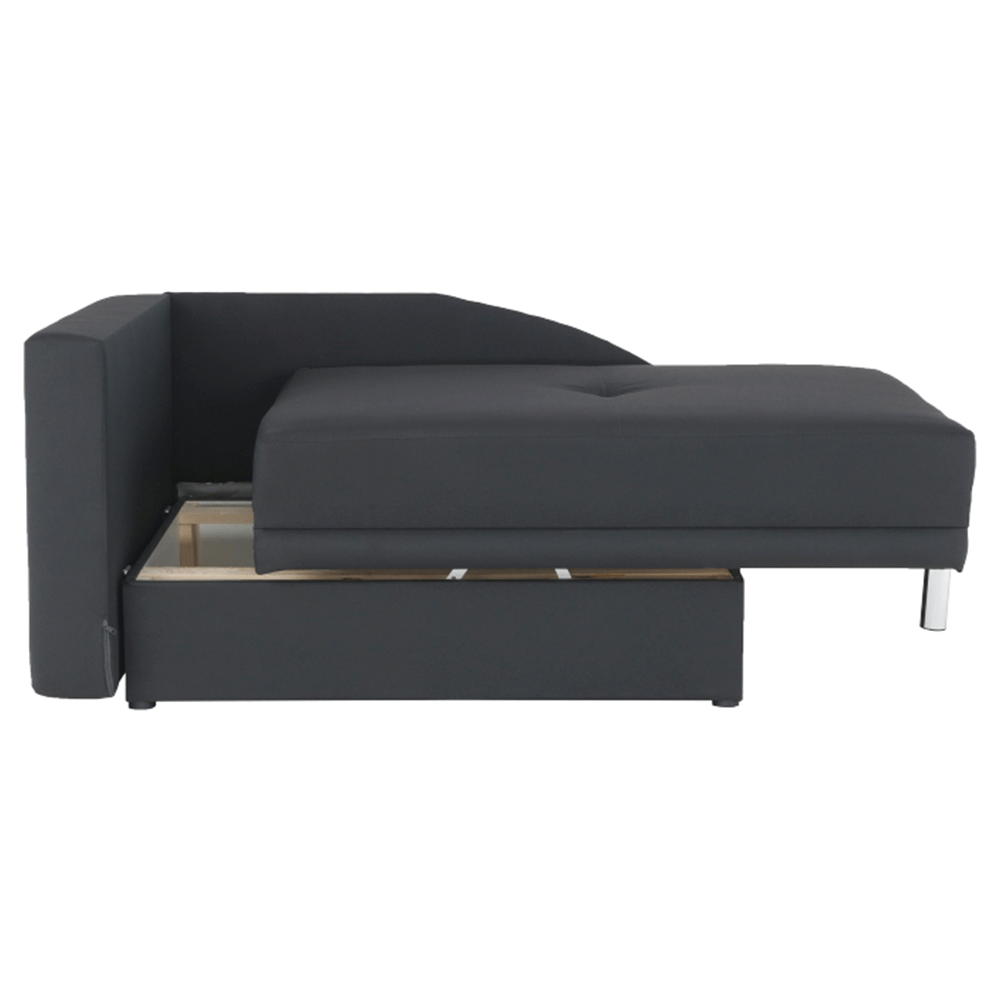 ;"Rozkládací pohovka s úložným prostorem, levá, LAUREL Materiál: látka Oděruodolnost textilie podle testu Martindale: 70 000 oděrek Barva: šedočerná Rozměry (ŠxHxV): 149x90x80 cm Plocha na spaní (ŠxD): 80x195 cm Výška sedu: 40 cm Hloubka sedu: 83 cm Výška spodního prostoru od podlahy: 10 …