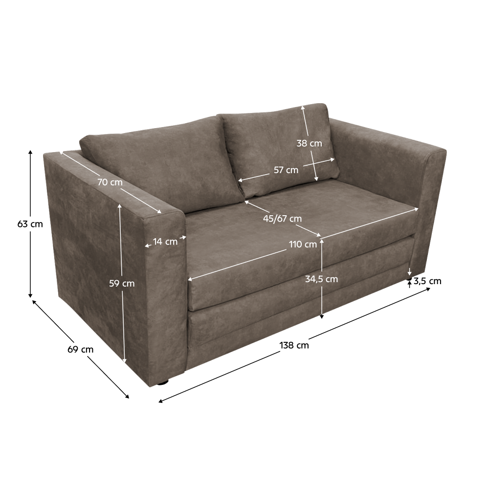 Materiál: látka ENJOY 37/sosna Oděruodolnost textilie podle testu Martindale: 45 000 oděrů Barva: šedohnědá Taupe Rozměry (ŠxHxV): 138x69x63 cm Plocha na spaní (ŠxD): 110x198 cm Výška sedu: 34,5 cm Hloubka sedu s polštářem: 45 cm Hloubka sedu bez polštáře : 67 cm Šířka sedu: 100 cm Výška spaní: 13…
