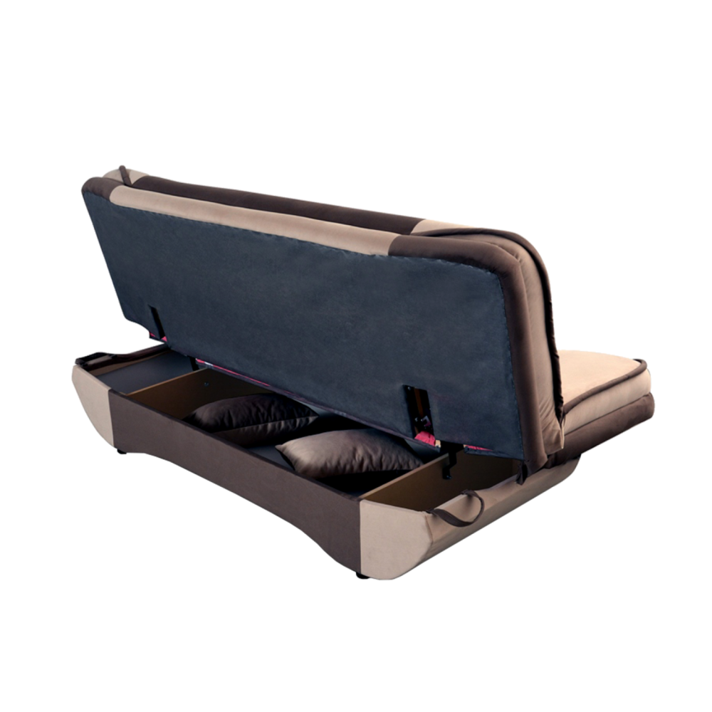 Materiál: látka Soro 23/28 Oděruodolnost textilie podle testu Martindale: 90 000- 100 000 oděrů Barva: šedohnědá Taupe/hnědá Rozměry (ŠxHxV): 200x95x100 cm Výška sedu: 45 cm Hloubka sedu: 57 cm Plocha na spaní (ŠxD): 122x200 cm Plastové nožičky Výška spodního prostoru od podlahy: 2 cm Výplň:…