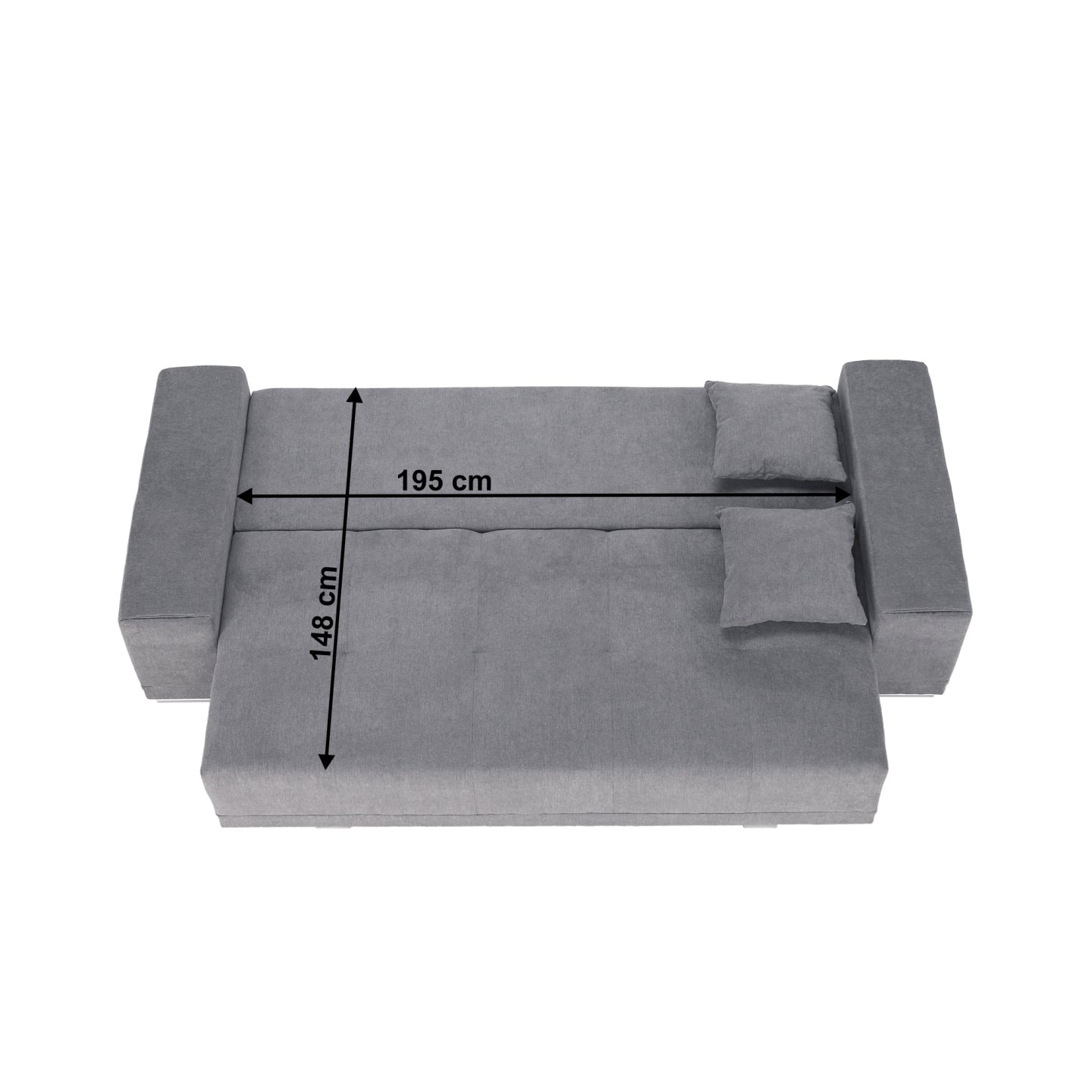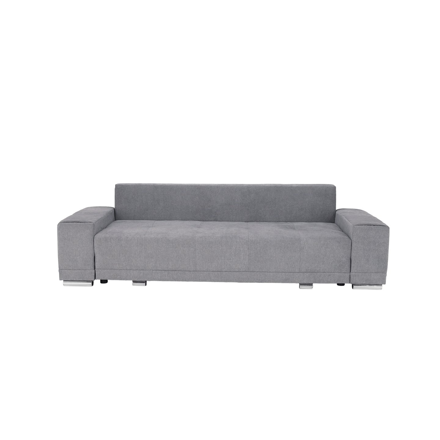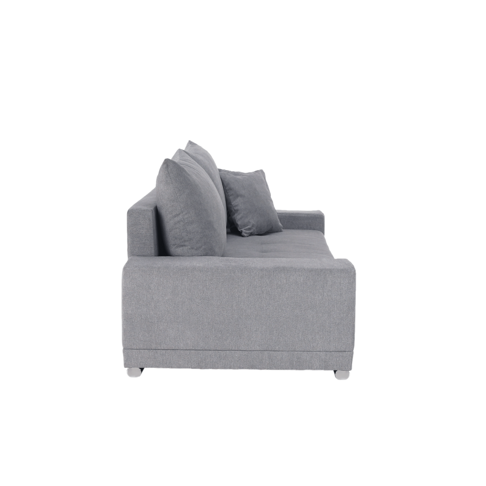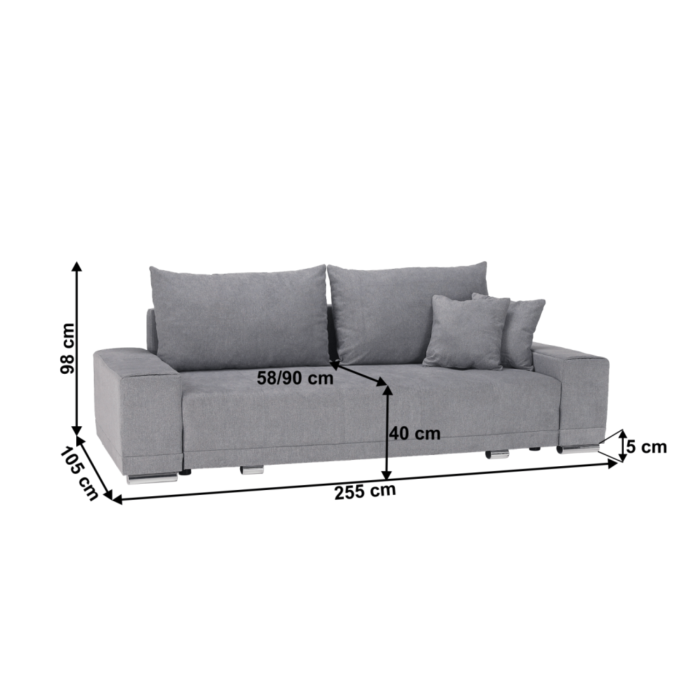 Materiál čalounění: látka Alfa Oděruodolnost textilie podle testu Martindale: 55 000 oděrek Barva čalounění: 13 světlešedá Rozměry (ŠxHxV): 255x105x98 cm Plocha na spaní (ŠxD): 148x195 cm Výška sedu: 40 cm Hloubka sedu: 58/90 cm Výška spodního prostoru od podlahy: 5 cm Výplň: pružina faliste / PUR…