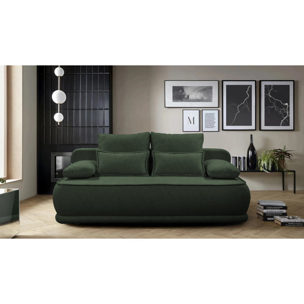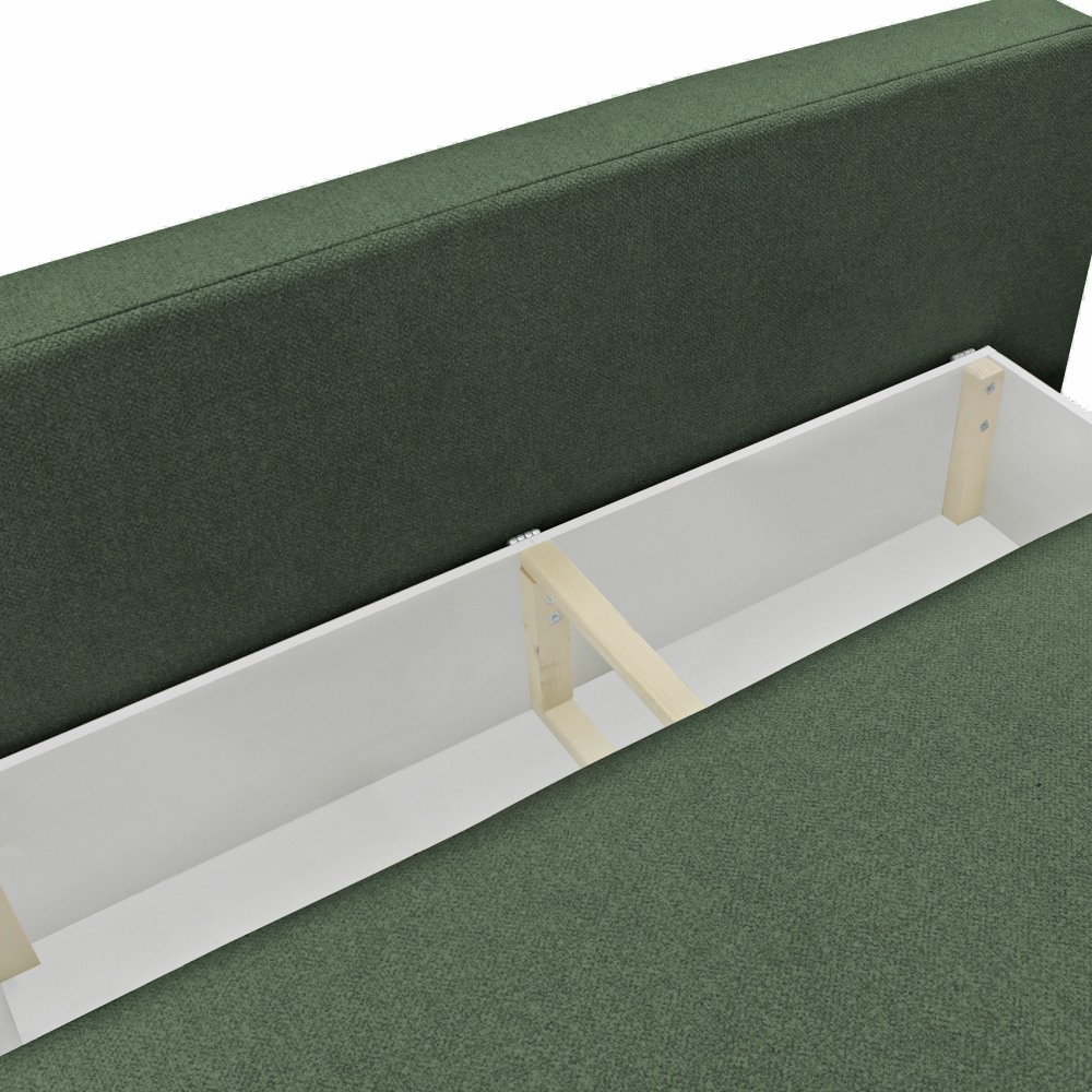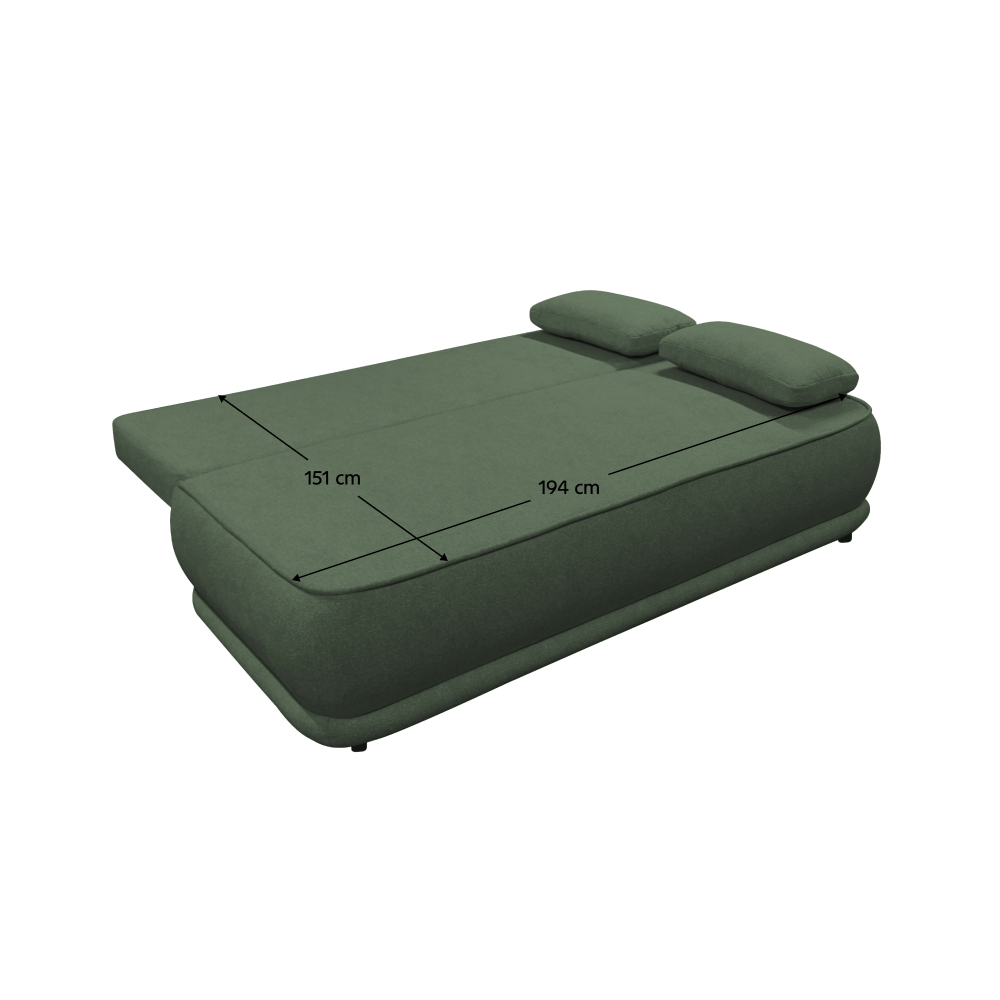 Celočalouněná je látkou Blur v provedení zelený melír a proto ji můžete umístit kdekoli do prostoru. Je rozkládací a v případě potřeby ji jednoduše rozložíte na lůžko, což oceníte při nečekané návštěvě. Vybavena je praktickým úložným prostorem, který je ideální pro uskladnění dek, polštářů či sezónních věcí. Pohovka je dodávána s polštáři, které poskytnou podporu zad a zároveň působí jako dekorace. O stabilitu se postarají černé plastové nožičky. Pohodlí při sezení na pohovce LAGO je zajištěno výplní v kombinaci pružiny vlnovcové a pur pěny.