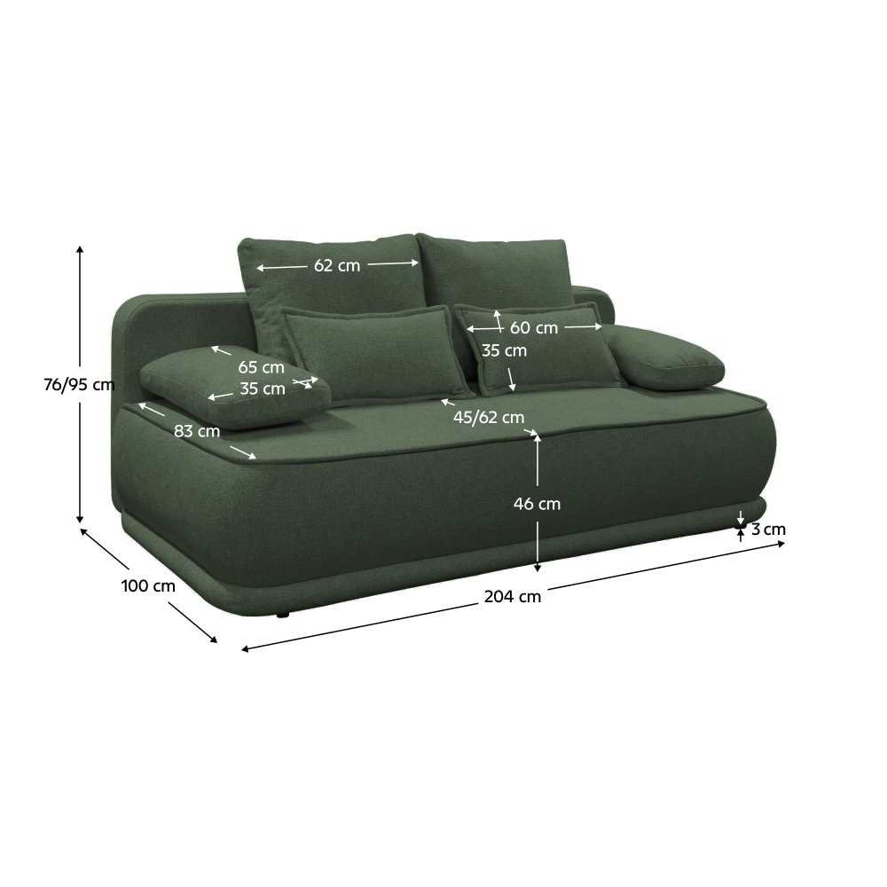 Materiál: látka Blur 12 Oděruodolnost textilie podle testu Martindale: 50 000 oděrů Barva: zelený melír Rozměry (ŠxHxV): 204x100x76/95 cm Plocha na spaní (ŠxD): 151x194 cm Výška sedu: 46 cm Hloubka sedu: 45/62/83 cm Nosnost na osobu: 90 kg Na nožičkách Materiál nožiček: plast Barva nožiček: černá…