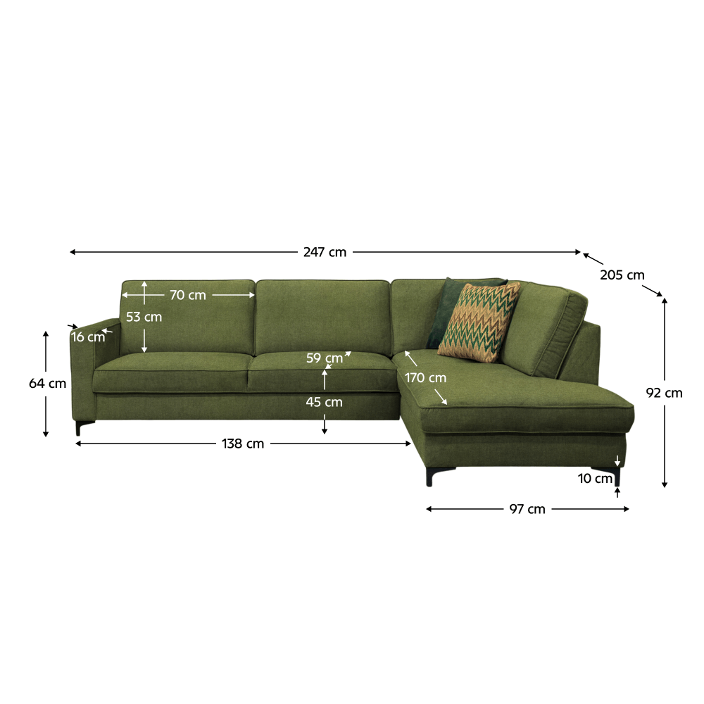 Materiál čalounění: látka Toronto 13 Oděruodolnost textilie podle testu Martindale: 70 000 oděrů Barva čalounění: olivová Rozměry (ŠxHxV): 247x205x92 cm Plocha na spaní (ŠxD): 127x200 cm Výška sedu: 45 cm Hloubka sedu: 59 cm Výška opěrky na ruku: 64 cm Šířka opěrky na ruku: 16 cm Na kovových…