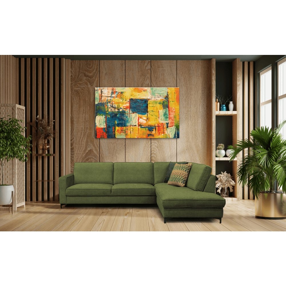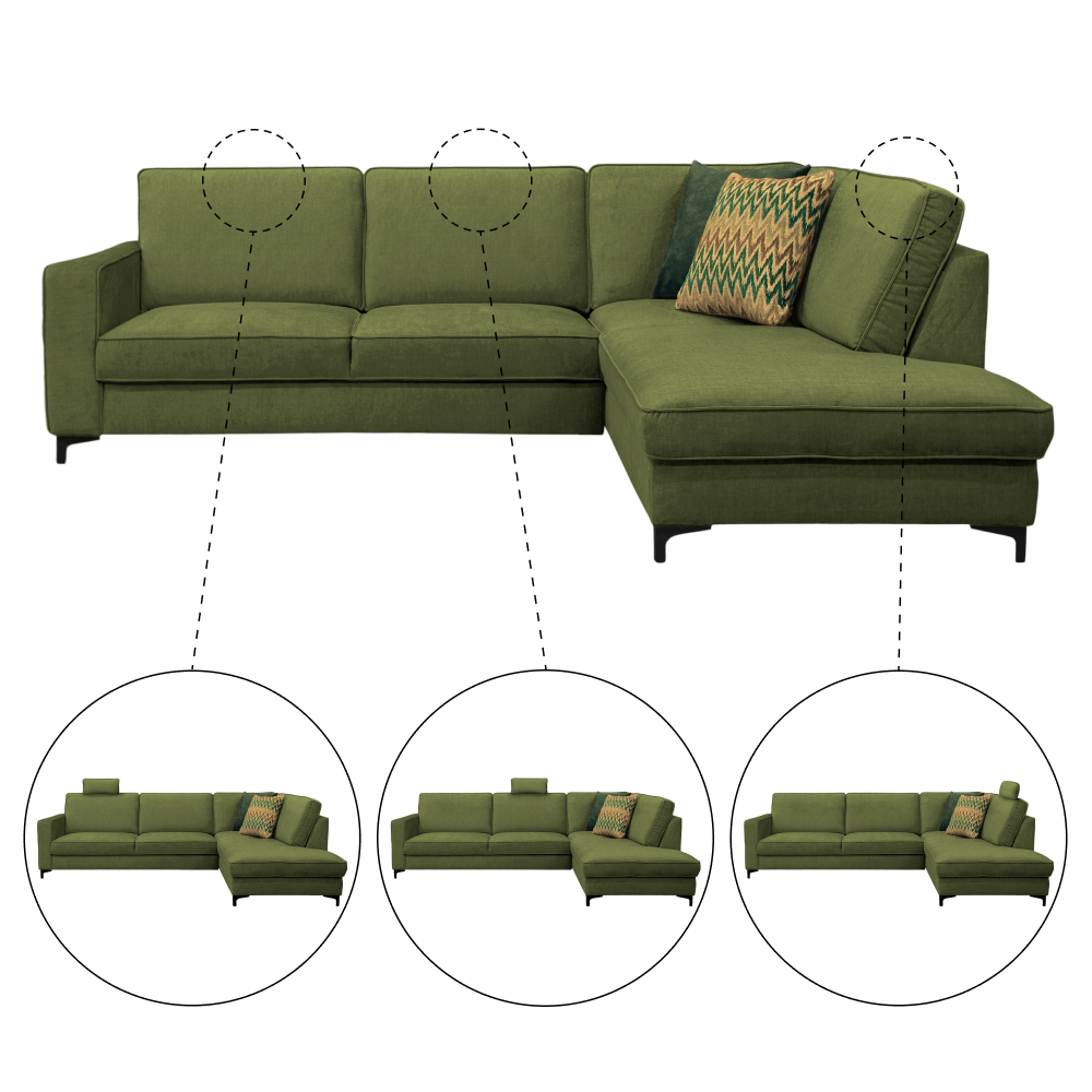 Rozkládací sedací souprava, olivová, pravá, ERMON ROH