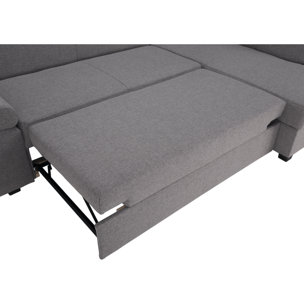 Je celočalouněná a rohová. K jejímu dalšímu benefitu patří funkce rozkladu, která se postará o plnohodnotné lůžko o rozměru 128x196 cm. FOSA je čalouněná do látky Neve v provedení šedý melír. Oceníte také její úložný prostor, který se nachází v otomanové části. Komfortní sezení zajišťují plastové nožičky ve stříbrné barvě. Výplň sedačky FOSA tvoří bonelová pružina v kombinaci s pur pěnou. Dodávána je spolu se dvěma malými dekorativními polštářky.