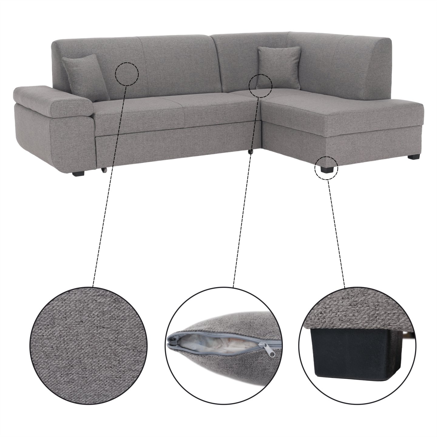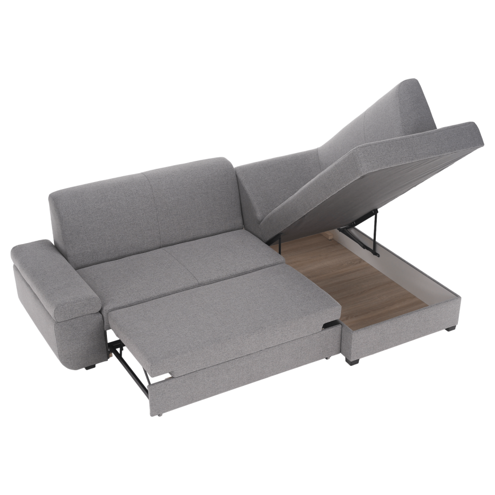 Rozkládací sedací souprava, šedý melír, pravá, FOSA ROH