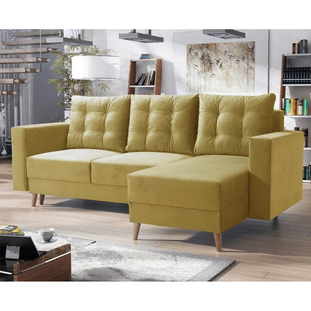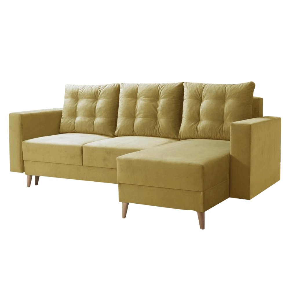 Rozkládací sedací souprava, žlutá, pravá, BLEKY ROH