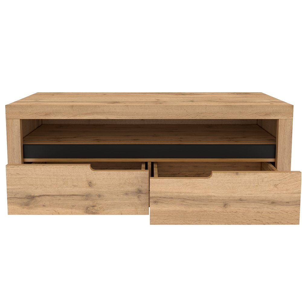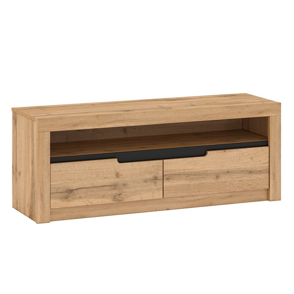 Televizní stolek TORONTA B se u vás určitě zabydlí. Nabízí úložný prostor v podobě dvou šuplíků a otevřené police. Všechny vaše věci získají jedinečný a stylový domov.