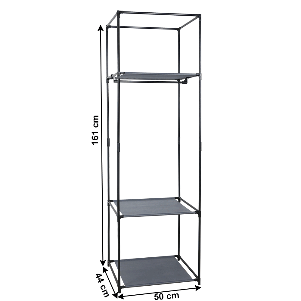 Díky kovové konstrukci je pevný a stabilní, ale třeba ho zatěžovat rovnoměrně. Věci si můžete pověsit na závěsnou tyč , případně uložit na 3 police. Jednotlivé police jsou z pevné černé látky, přičemž každá police má nosnost 3 kg. Tento kovový věšák přinese vzdušný a prostorný vzhled do místnosti. Elegantní černé provedení se jednoduše kombinuje s jinými kusy nábytku. Využijte prostor, který máte k dispozici, na maximum!
