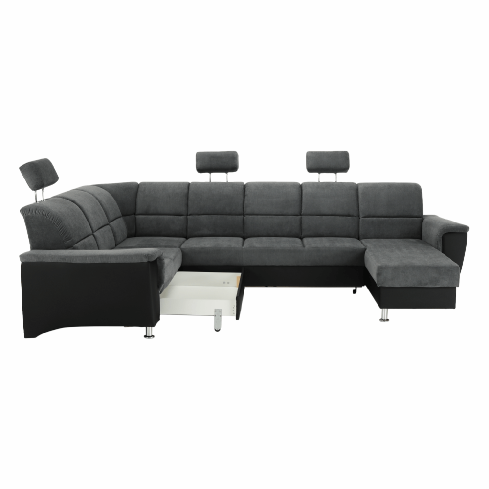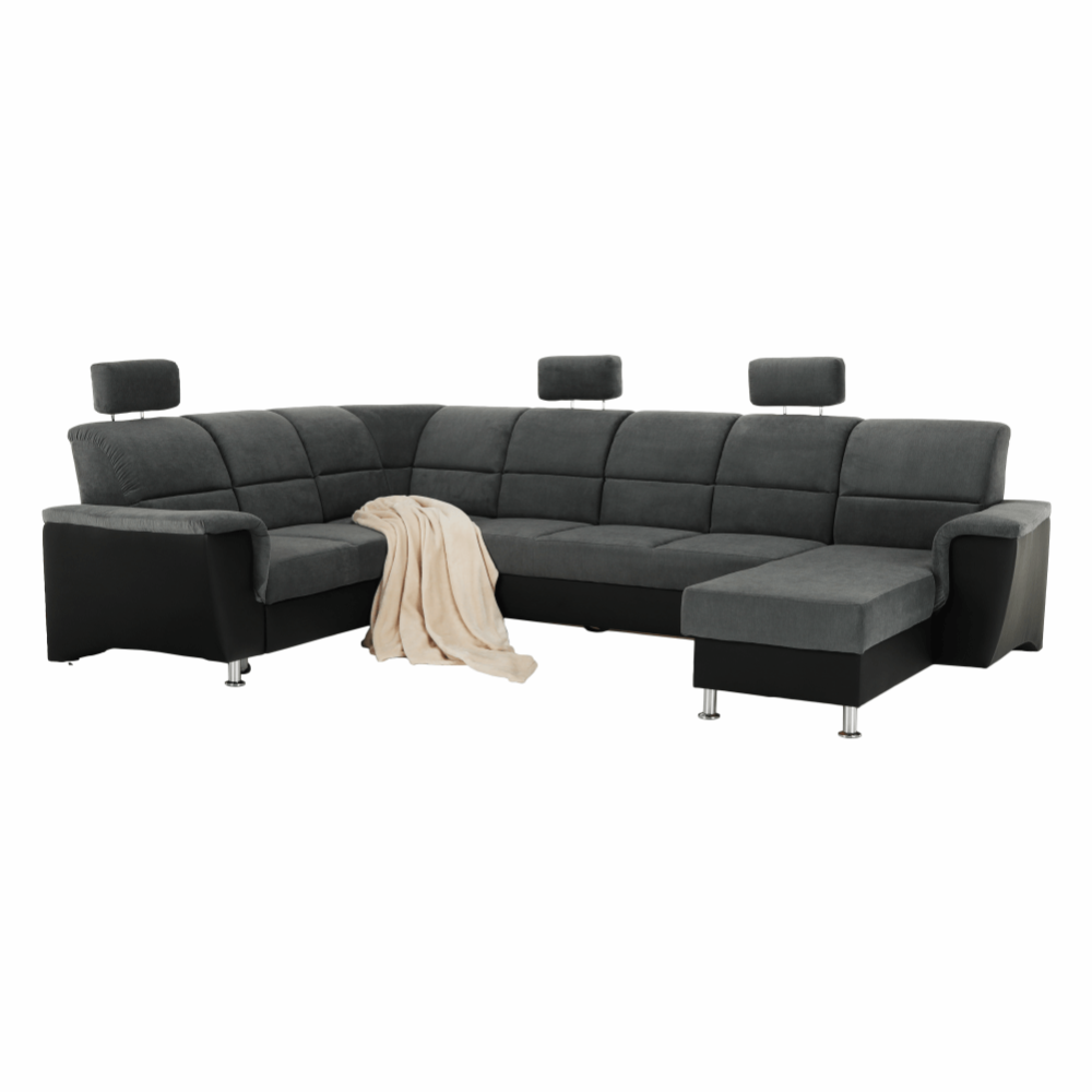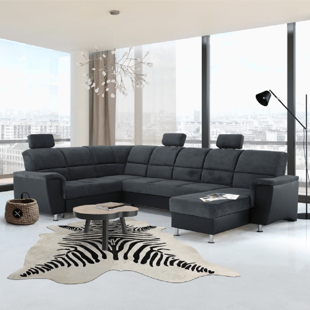Pozorně si prohlédněte sedačku SANTIAGO. Nenapodobitelný vzhled, jedinečný design a zaručený komfort. Tímto vším se pyšní náš sedačkový skvost. Díky unikátnímu provedení v tmavě šedé látce Matrix a černé ekokůži se snadno stane součástí každého obývacího pokoje. Sedačka je v oblíbeném tvaru U.