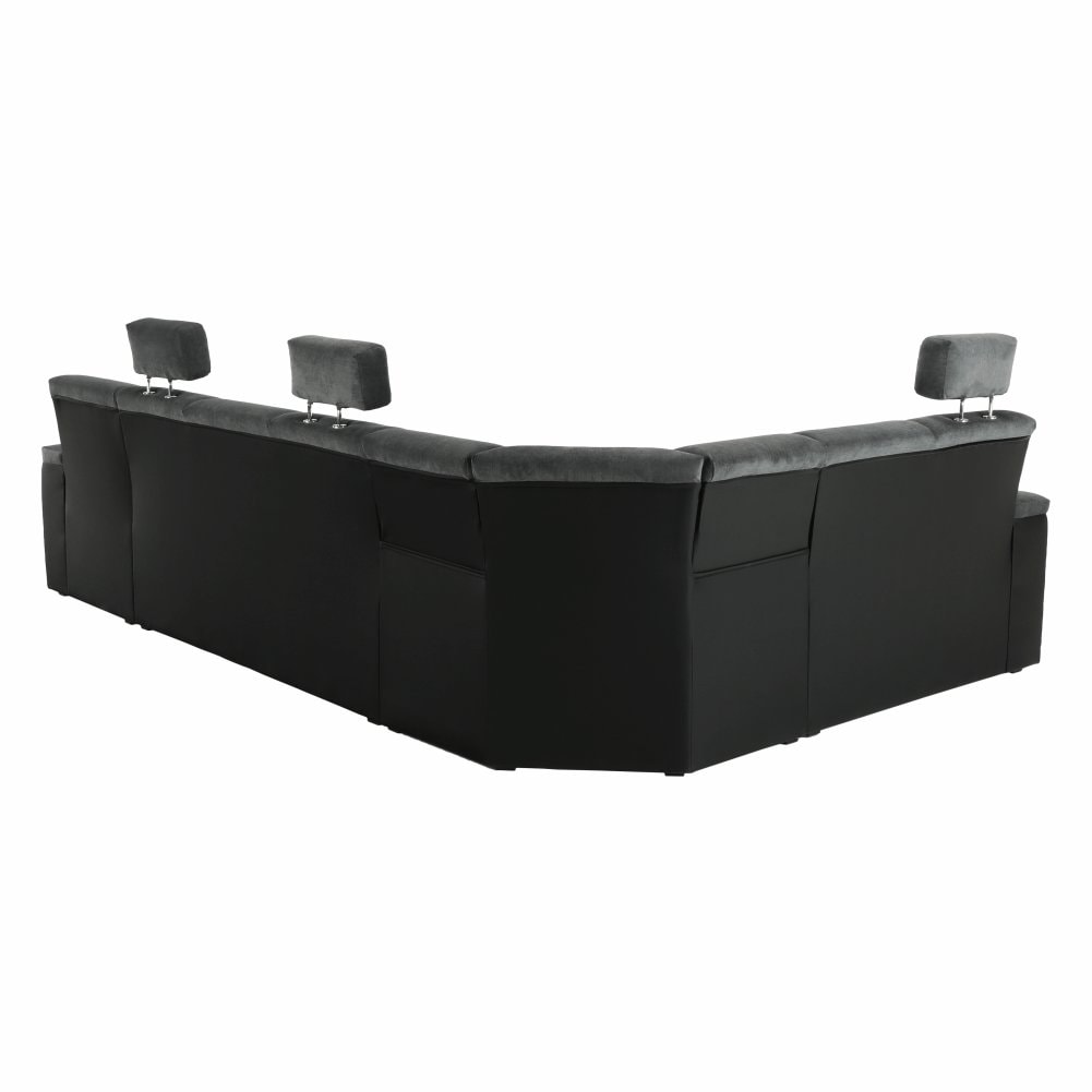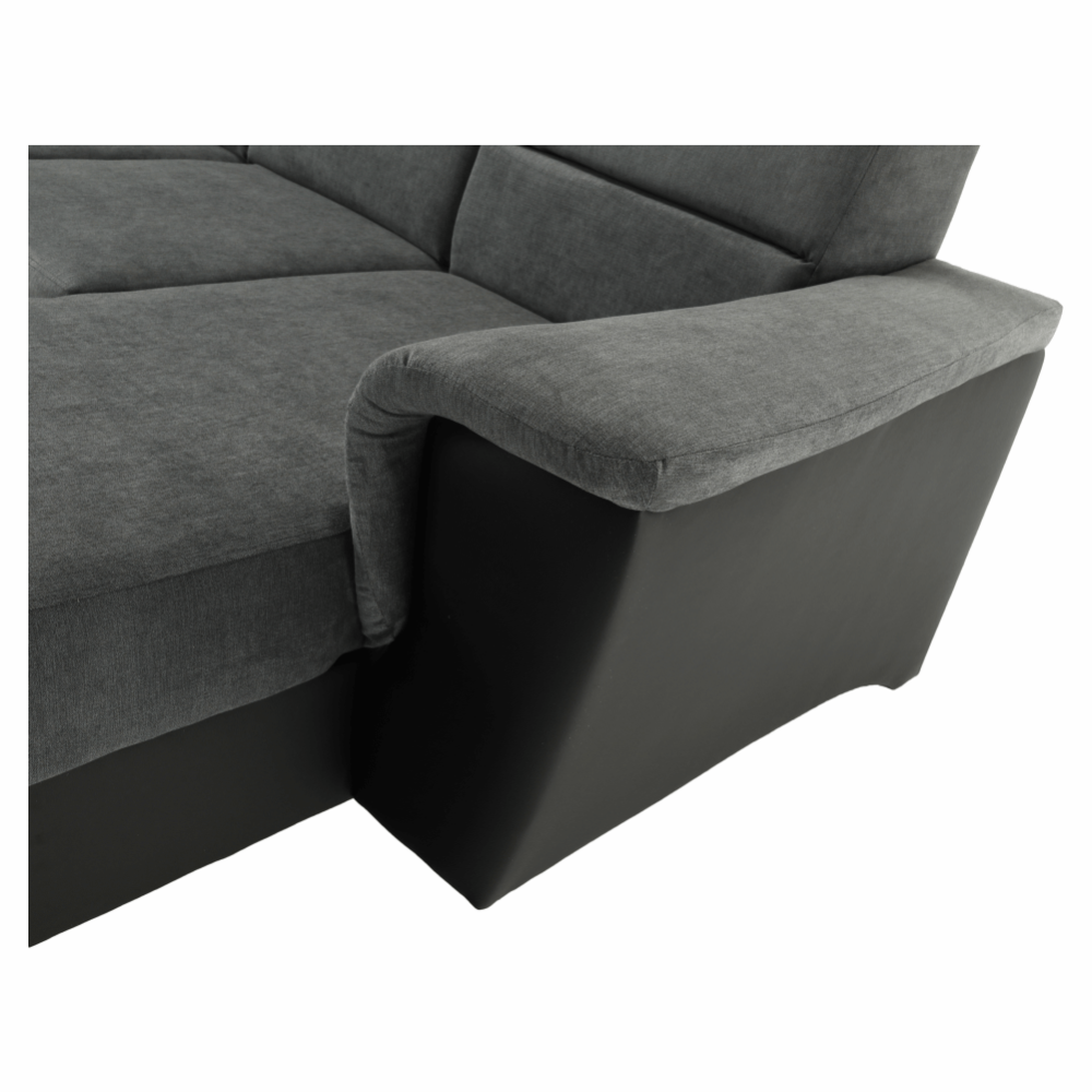 Sedací souprava, ekokůže černá / látka tmavě šedá, levá, SANTIAGO U