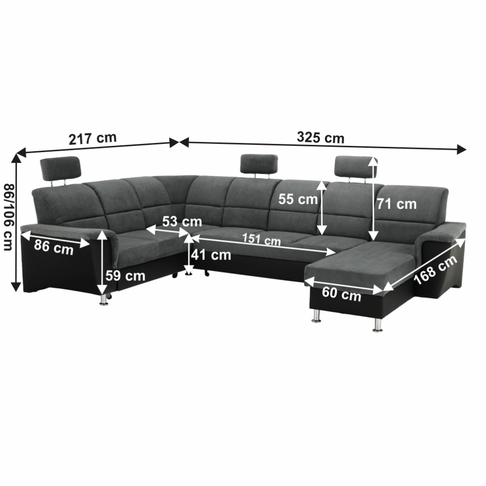 Celočalouněná, rozkládací sedací souprava ve tvaru U, levá, SANTIAGO U Materiál: ekokůže / látka Oděruodolnost textilie Matrix podle testu Martindale: 72 000 oděrek Oděruodolnost ekokůže podle testu Martindale: 100 000 oděrek Barva: černá / Matrix 19 tmavě šedá Rozměry (ŠxHxV): 325x86 /…