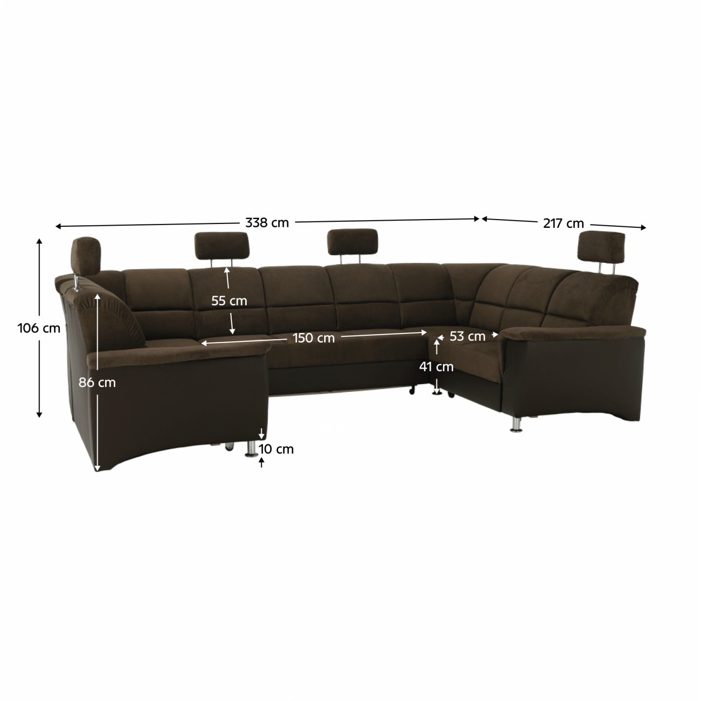 ;"Celočalouněná univerzální rozkládací sedací souprava ve tvaru U, SANTIAGO U VELKÝ Materiál: ekokůže / látka Oděruodolnost textilie Matrix podle testu Martindale: 72 000 oděrek Oděruodolnost ekokůže podle testu Martindale: 100 000 oděrek Barva: hnědá / Matrix 5 hnědá Rozměry (ŠxHxV): 338x217 …