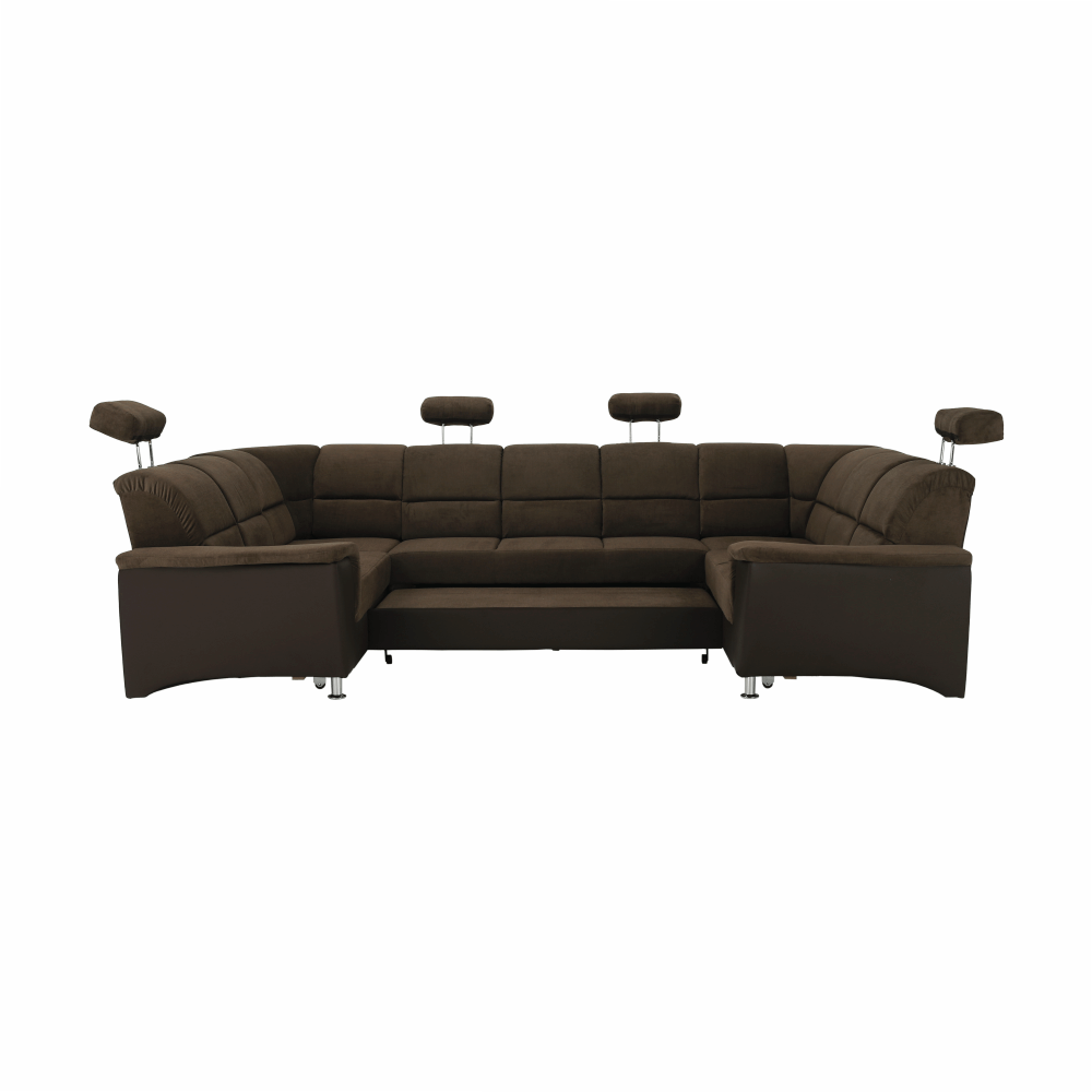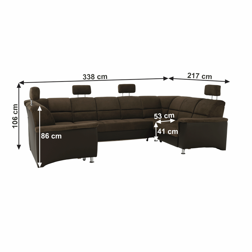;"Celočalouněná univerzální rozkládací sedací souprava ve tvaru U, SANTIAGO U VELKÝ Materiál: ekokůže / látka Oděruodolnost textilie Matrix podle testu Martindale: 72 000 oděrek Oděruodolnost ekokůže podle testu Martindale: 100 000 oděrek Barva: hnědá / Matrix 5 hnědá Rozměry (ŠxHxV): 338x217 …