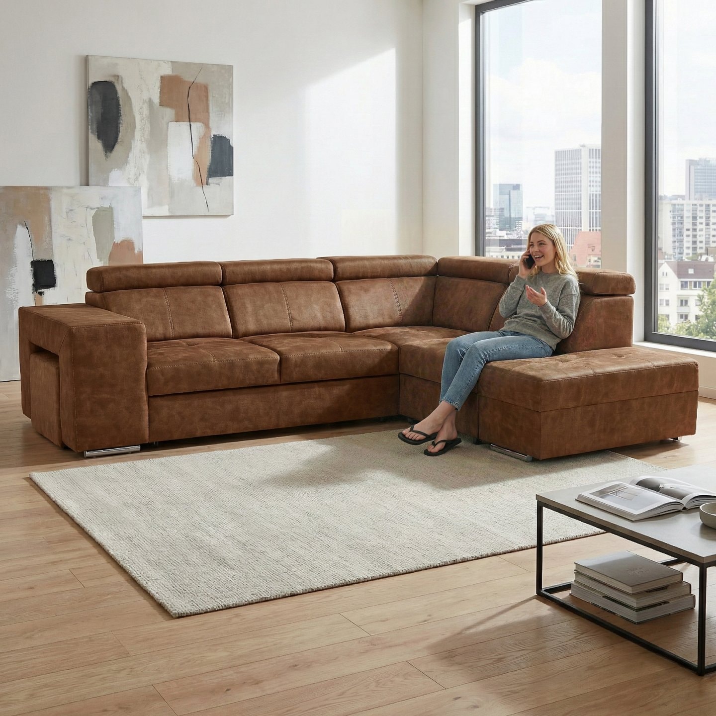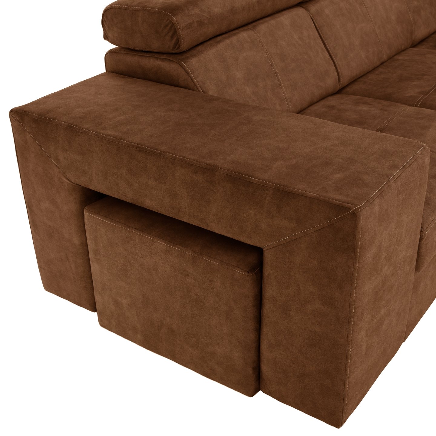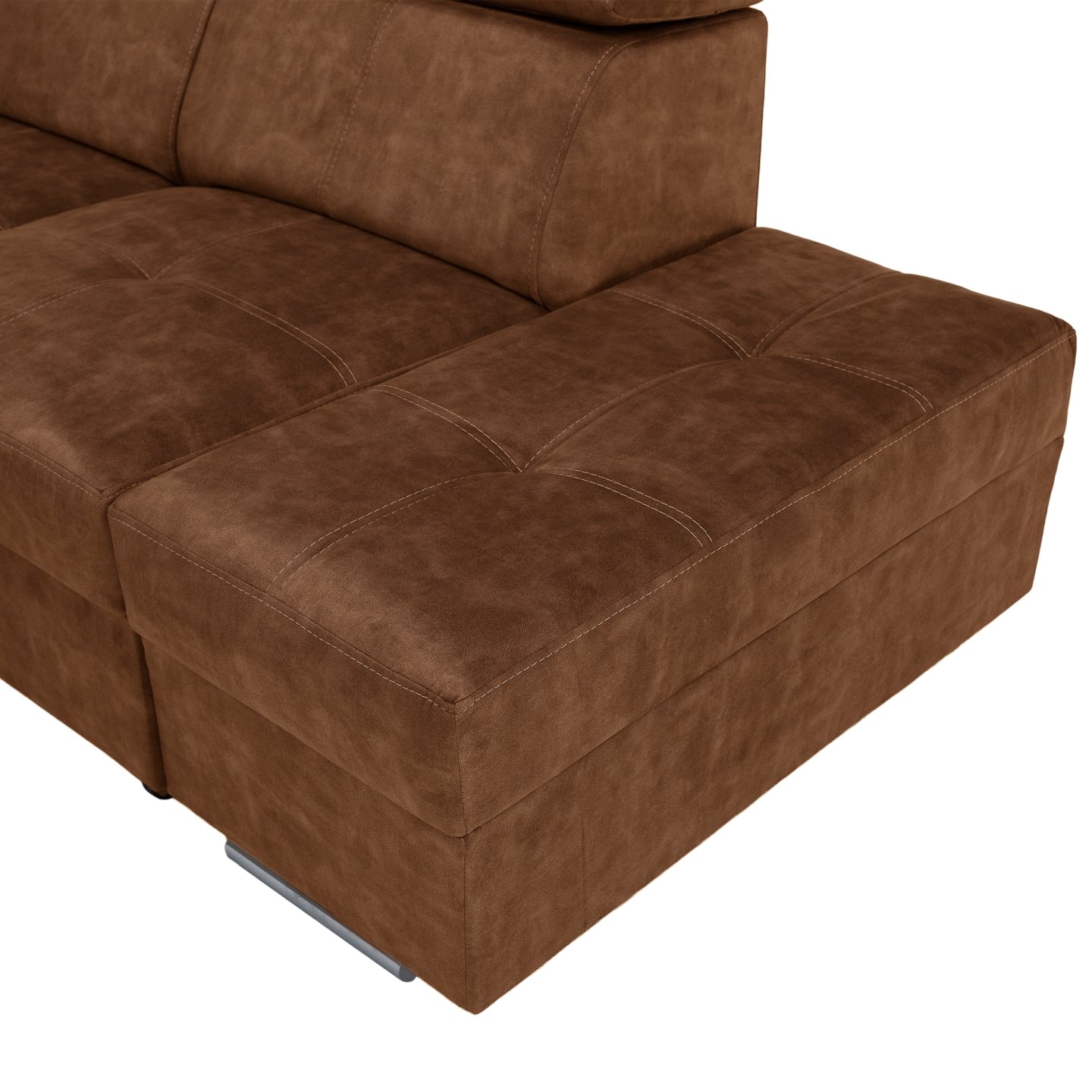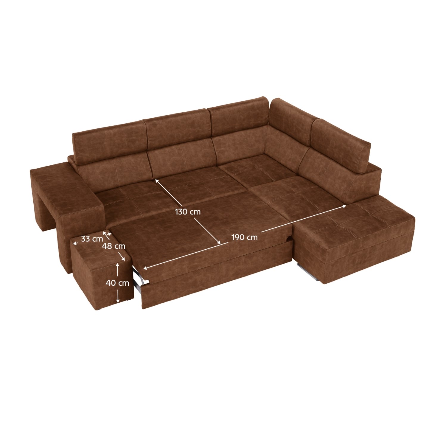 Materiál čalounění: látka Country 8 Oděruodolnost textilie podle testu Martindale: 65 000 oděrů Barva: hnědá Materiál konstrukce: borového dřeva/bukového dřeva/laminátová deska Rozměry (ŠxHxV): 264x210x79/97 cm Plocha na spaní (ŠxD): 130x190 cm Výška sedu: 43 cm Hloubka sedu: 56 cm Rozměry otomanu …