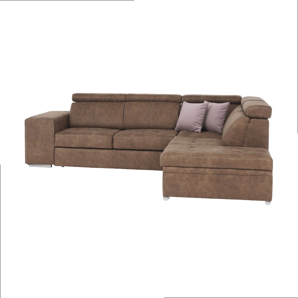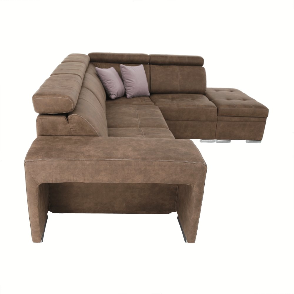 Celočalúnená rohová rozkladacia sedacia súprava s úložným priestorom a s polohovacím záhlavím. Materiál: Látka Preston/ látka Jasmine Oděruodolnost textilie Preston podle testu Martindale: 68 000 oděrek Oděruodolnost textilie Jasmine podle testu Martindale: 90 000 oděrek Farba: hnedá/svetlofialová…