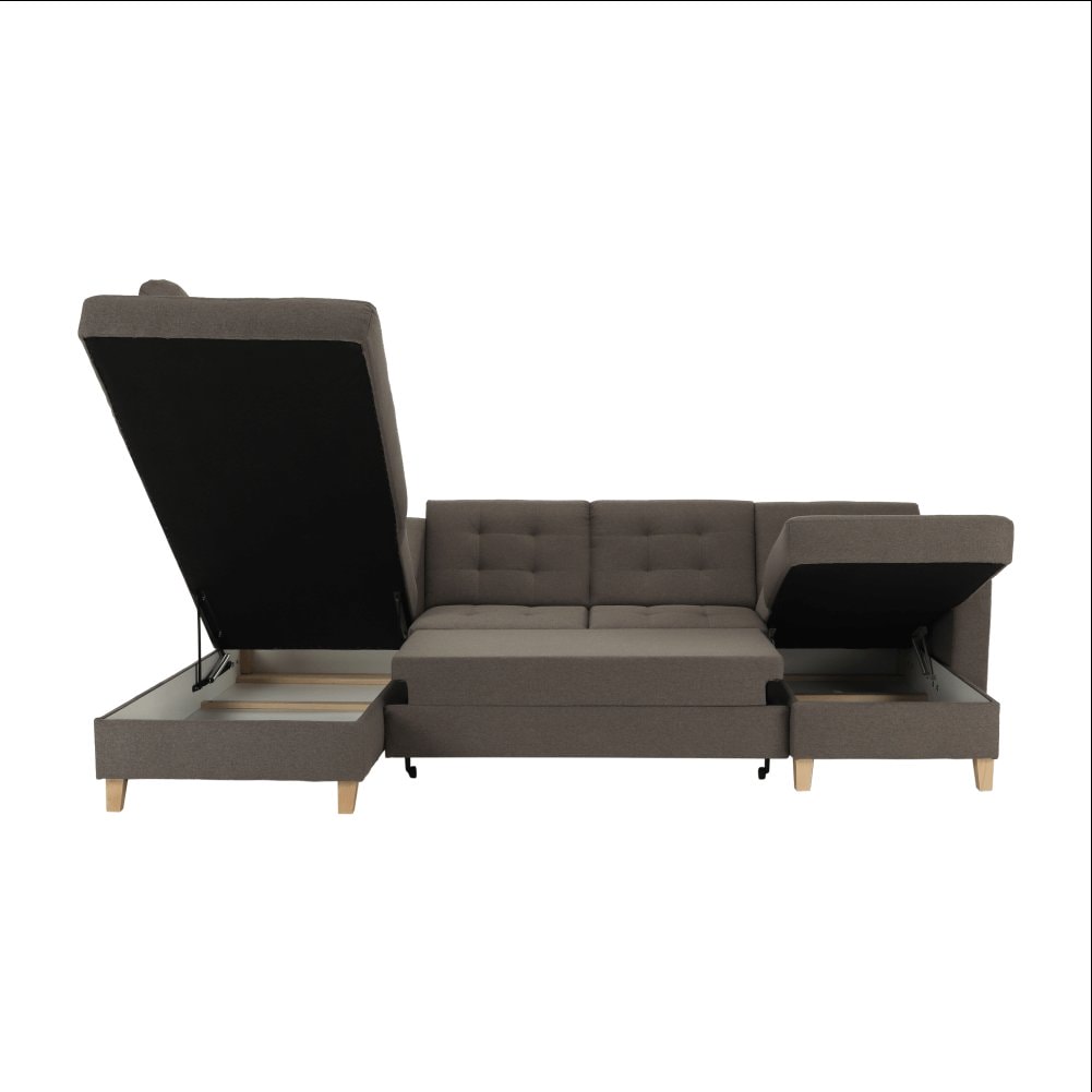 Tento styl pochází ze severských zemí, jako jsou Švédsko, Finsko a Norsko, je známý precizním detailním zpracováním a kvalitním materiálem, což je v tomto případě látka STARK spojená s dřevěnými nožkami. Barva šedo hnědá taupe je nadčasová, neutrální a snadno se kombinuje s jiným nábytkem. Na pohled krásná sedačka ukrývá v sobě praktické vlastnost, jako je funkce rozkladu nebo dva úložné prostory, kde uložíte vše co budete potřebovat. Sedací část vyplňuje pružina vlnovcová. BRIDGET, to je kousek Skandinávie u vás doma.