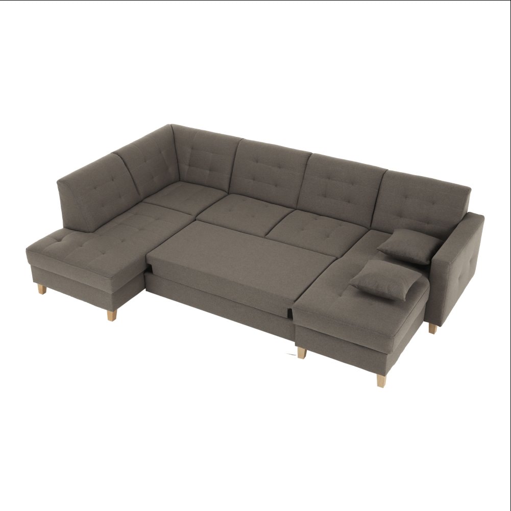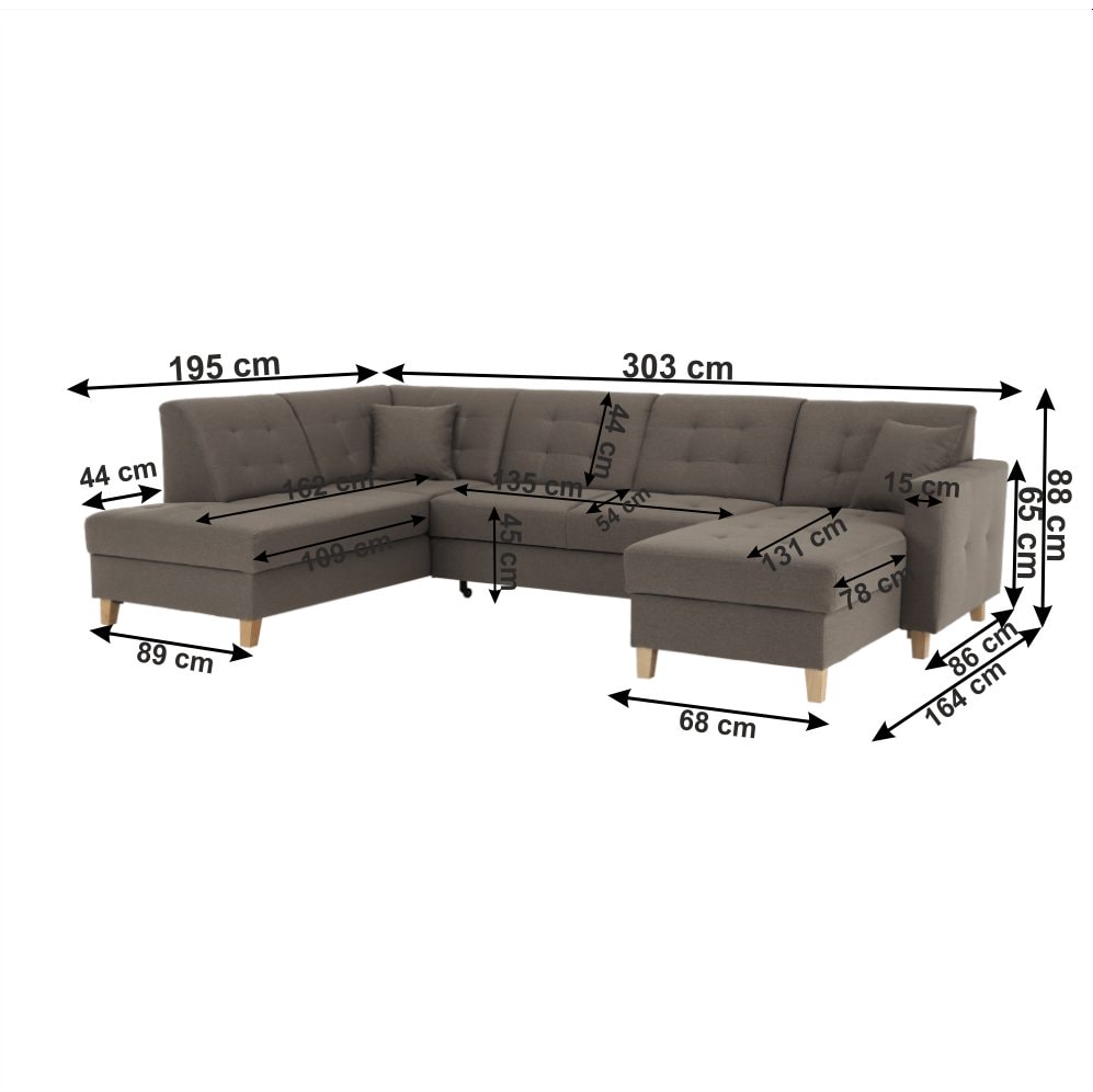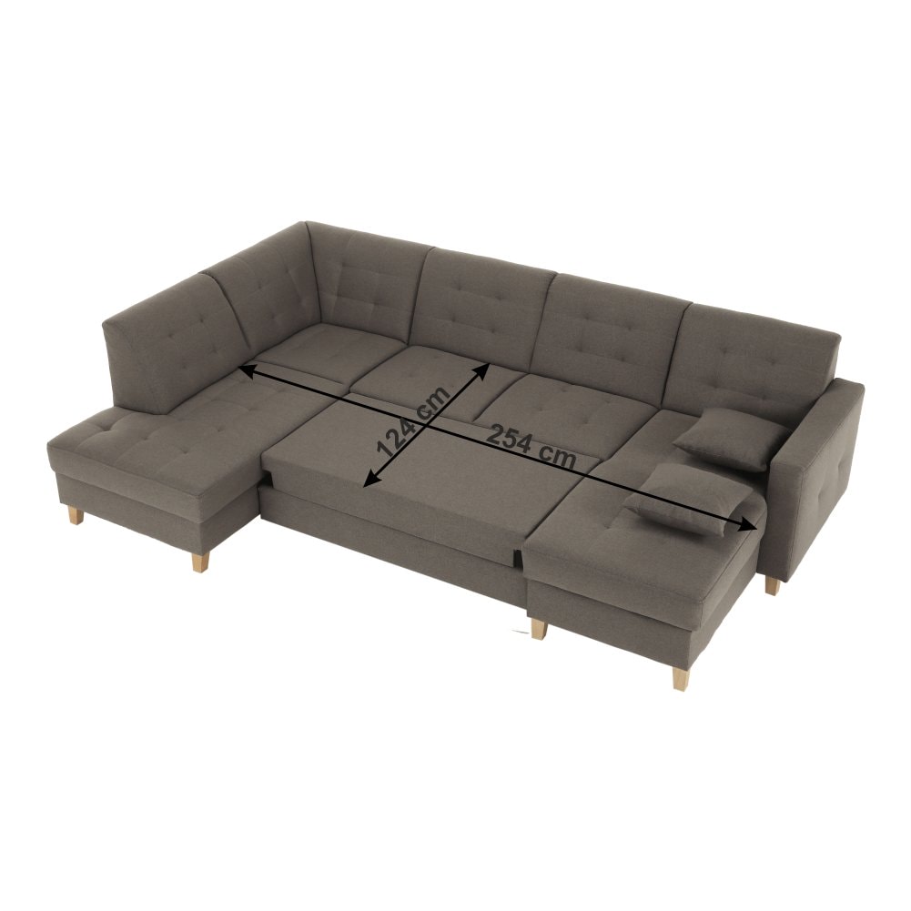 Materiál: látka Stark 373/dřevo Oděruodolnost textilie podle testu Martindale: 50 000 oděrek Materiál nohy: bukové dřevo Provedení: šedohnědá TAUPE Rozměry (ŠxHxV): 303x164 / 195x88 cm Plocha na spaní (ŠxD): 124x254 cm Výška sedu: 45 cm Hloubka sedu: 54 cm Výška nožiček: 11 cm Šířka volného…