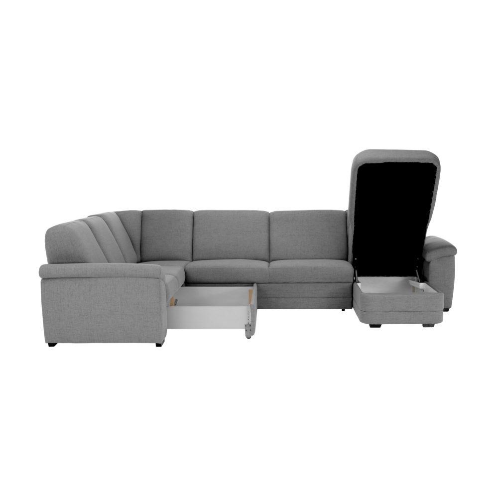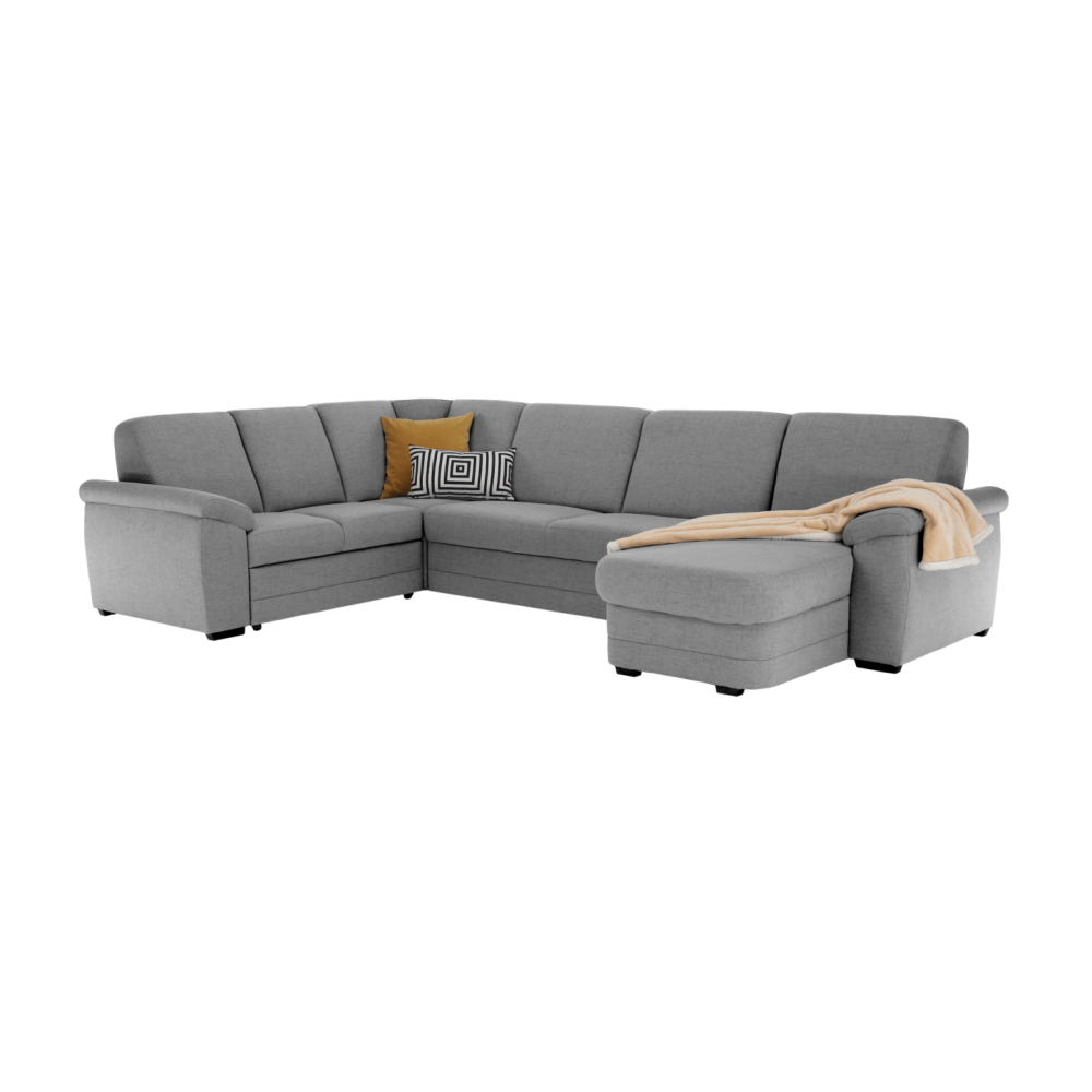 Sedací souprava ve tvaru U, látka šedá, pravá, BITER U