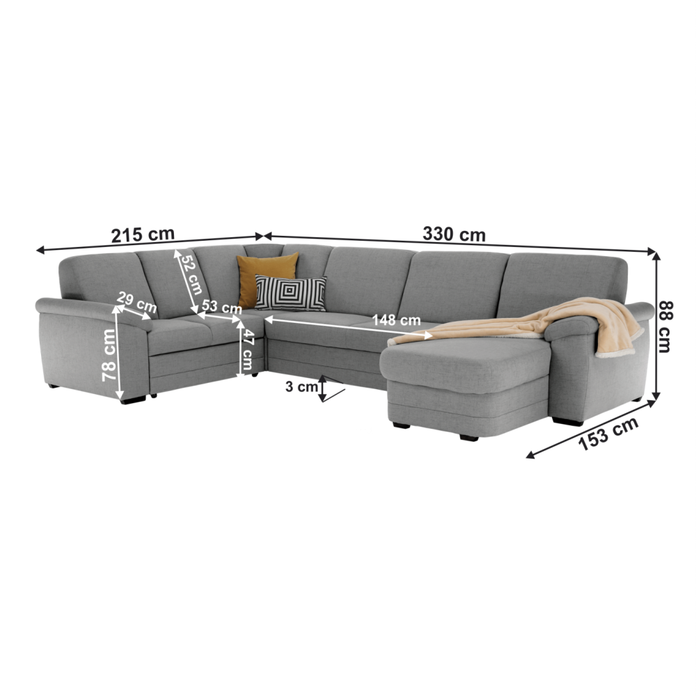 Materiál: látka Cablo Oděruodolnost textilie podle testu Martindale: 72 000 oděrů Barva: šedá 14 Rozměry (ŠxHxV): 330x215/153x88 Plocha na spaní (ŠxD): 120x260 cm Výška sedu: 47 cm Hloubka sedu: 53 cm Šířka volného prostoru mezi otomany: 148 cm Výška nožiček: 3 cm Výška zádové opěrky: 52 cm Opěrka…
