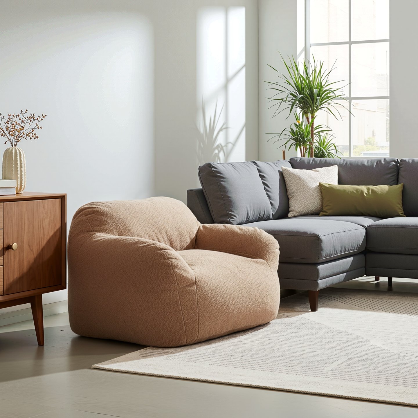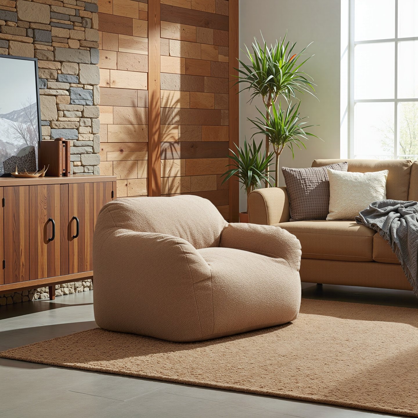 Hledáte pohodlné místo k odpočinku? Moderní sedací vak FUFY ve světle hnědé barvě vám nabízí dokonalé spojení pohodlí, praktičnosti a stylového designu. Vak je vyroben z Bouclé látky, která je příjemná na dotek a vyplněný je kompresní pěnou. Jedná se o stlačenou pěnu, proto doporučujeme otevřít pěnu a nechat ji dosáhnout svého objemu 24 hodin, aby byl tvar co nejlepší. Na zadní straně naleznete praktické ouško, které vám pomůže při přesouvání vaku. Ať už ho využijete ke čtení, odpočinku, nebo jen tak k lenošení, sedací pytel FUFY se stane vaším oblíbeným společníkem pro chvíle pohody.
