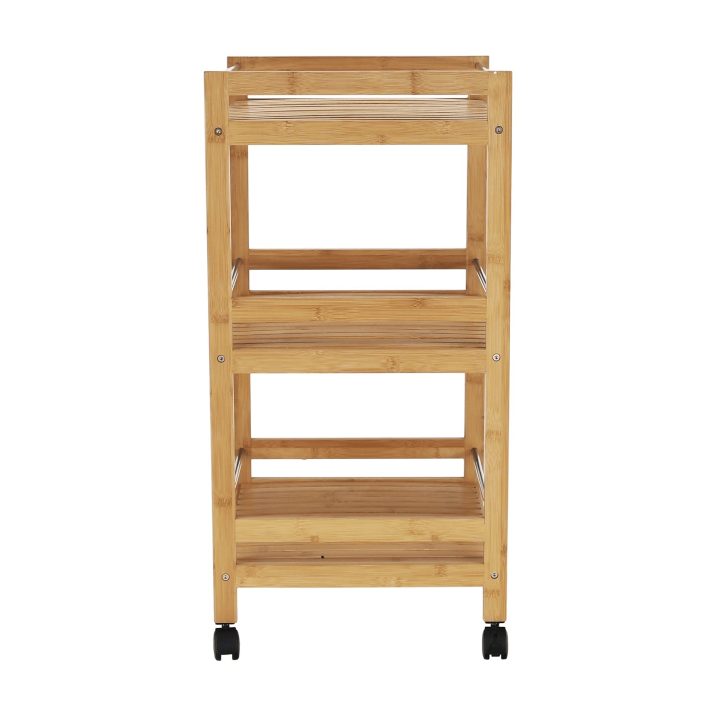 Materiál: bambus / nerezavějící ocel Barva: přírodní Rozměry (ŠxHxV): 47x38x76 cm 3 police servírovací odkládací na kolečkách Dvě kolečka s brzdami Dodávané v demontu