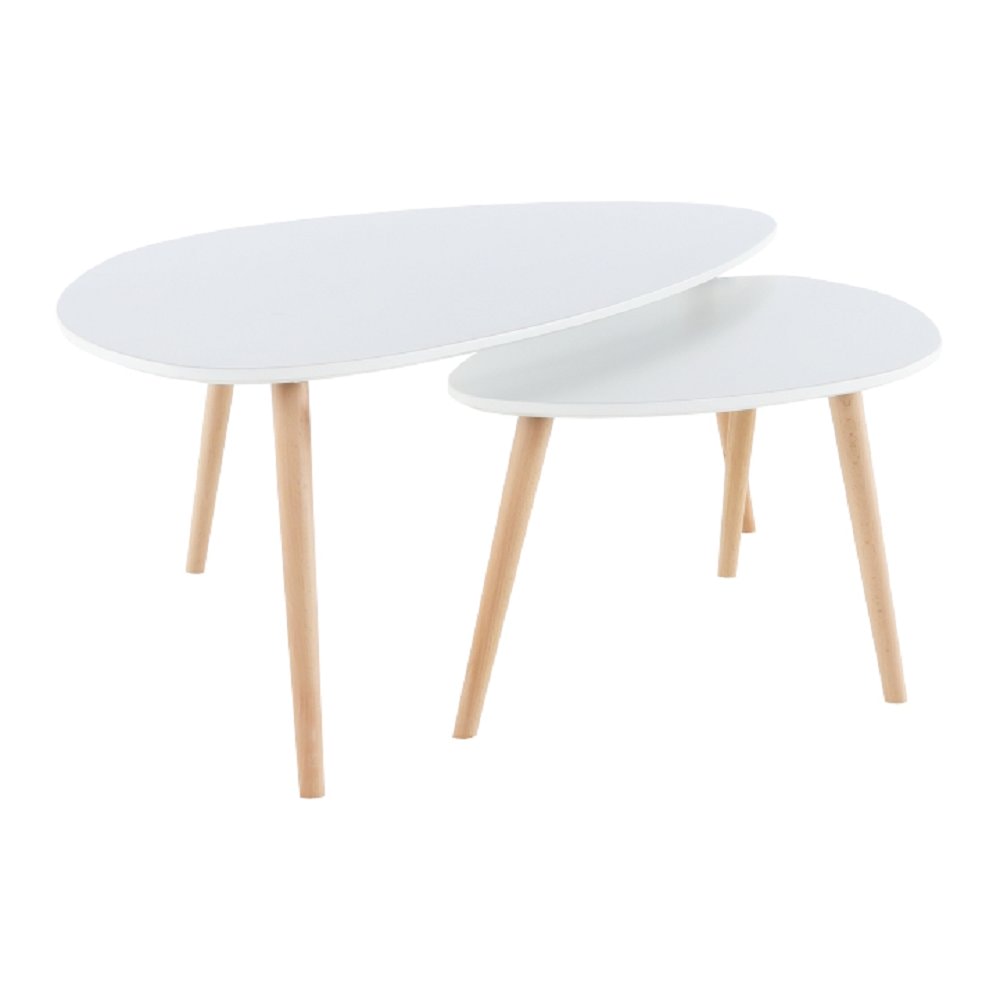 Set dvou stolků je v bílé barvě s nožičkami v provedení buk.