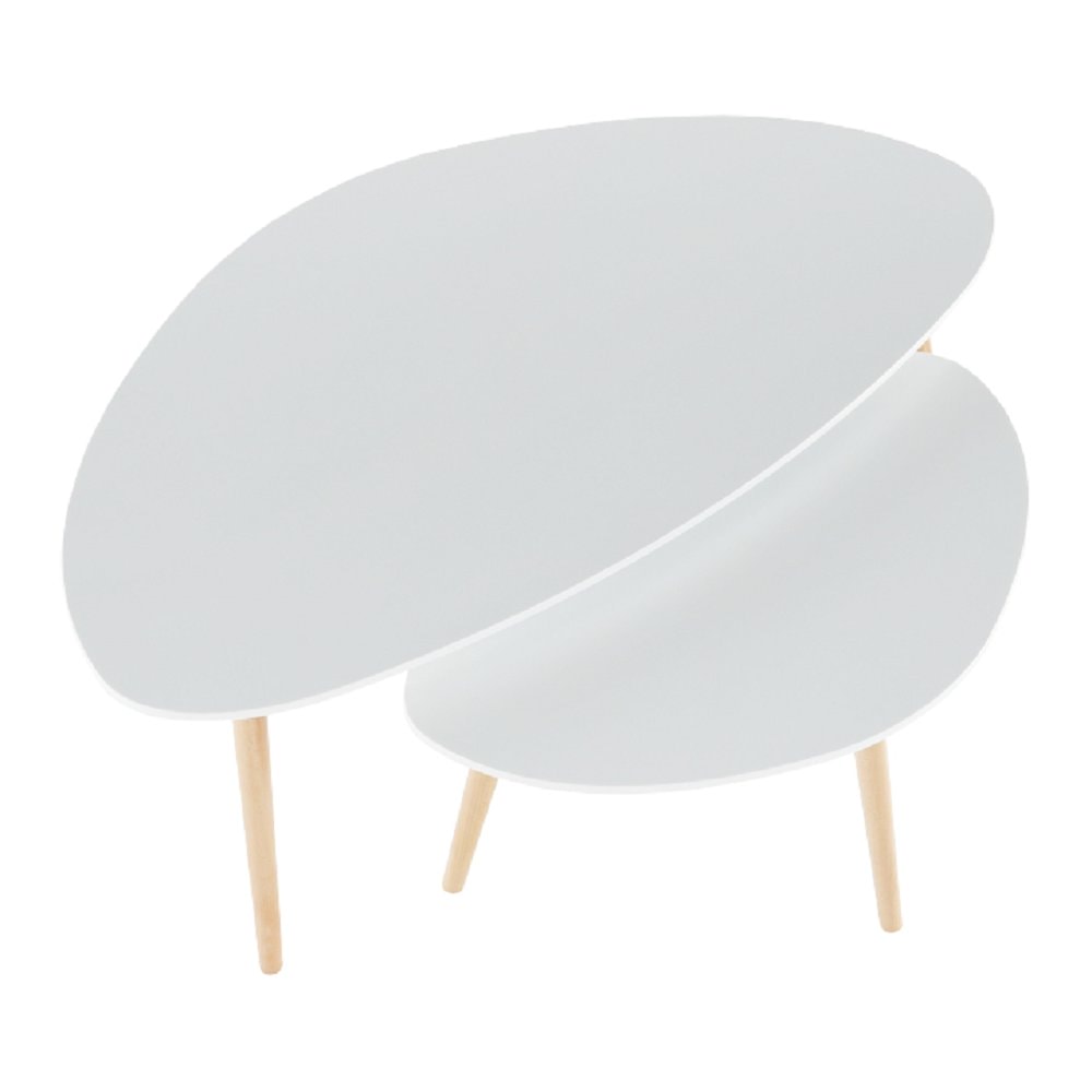 Set dvou stolků je v bílé barvě s nožičkami v provedení buk.