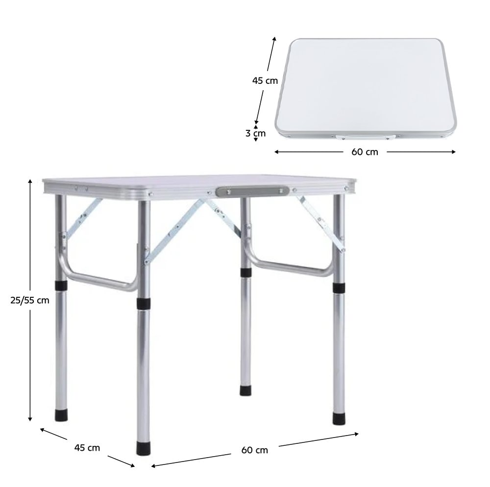 Materiál: hliník/MDF Barva: šedá Rozměry rozložený stůl (ŠxHxV): 60x45x55 cm Stůl je výškově nastavitelný Výši lze nastavit ve dvou úrovních Nastavitelná výška: 25/55 cm Možnost složit Rozměry složený stůl (ŠxHxV): 60x45x3 cm Lehký a praktický Skládací Přenosný Jednoduchá manipulace a skladování…