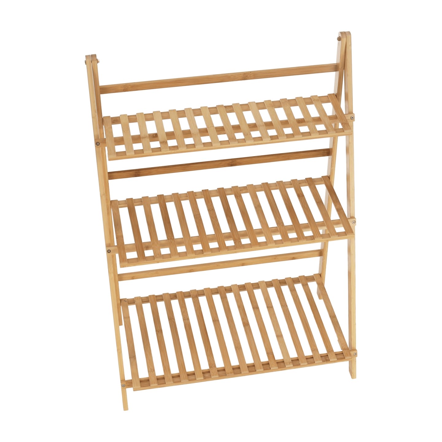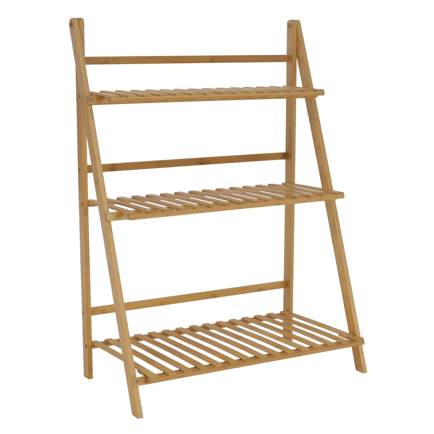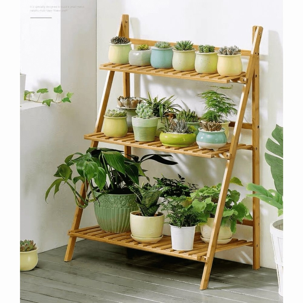 Materiál: bambus Barva: bambus Rozměry (ŠxHxV): 70x40x96 cm Nosnost na polici: 10 kg tři police Skládací Složený nezabere mnoho místa Jeden pár rukavic grátis Set ručního zahradního nářadí grátis Vhodný do interiéru i exteriéru Dodávané v demontu