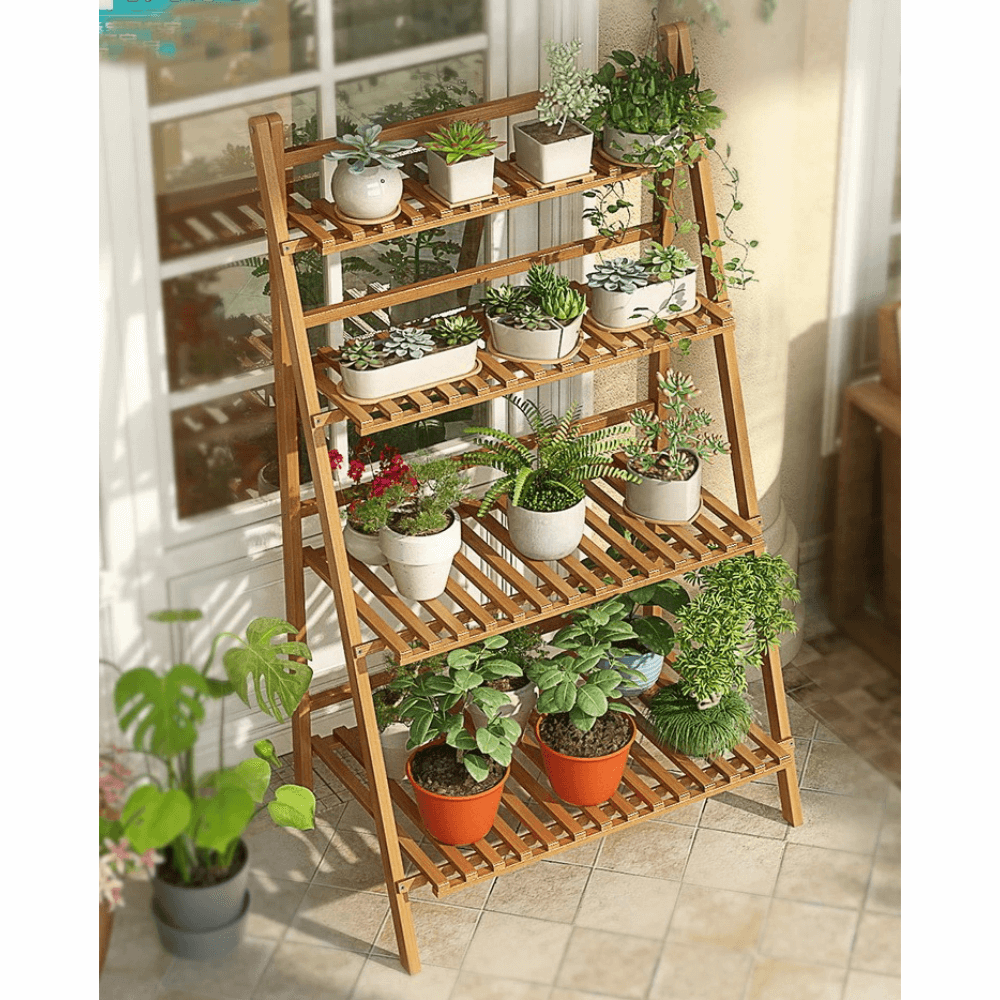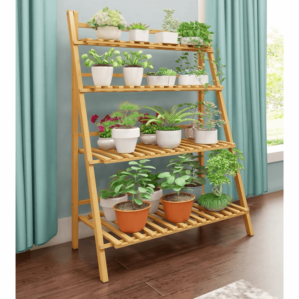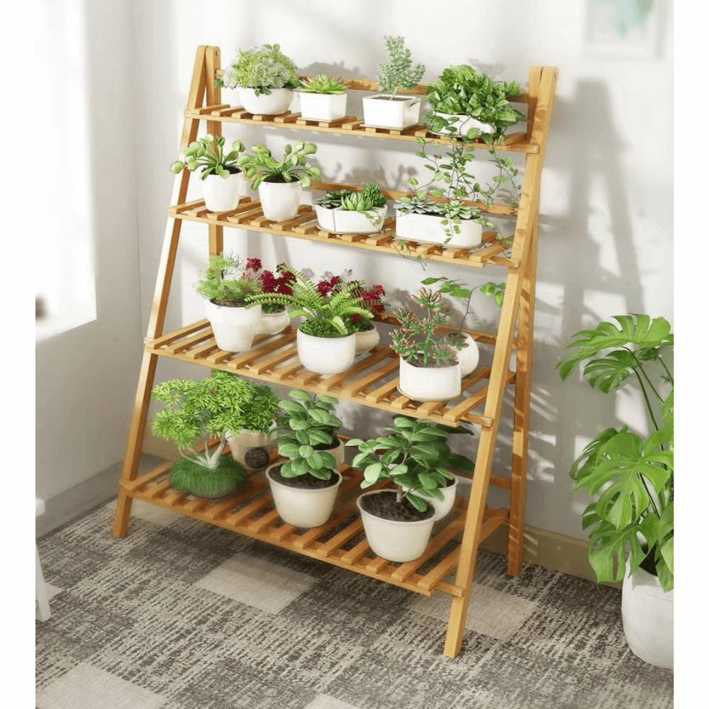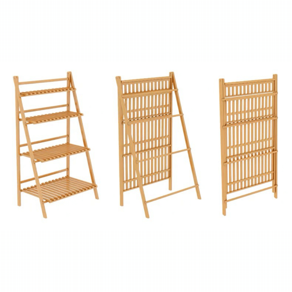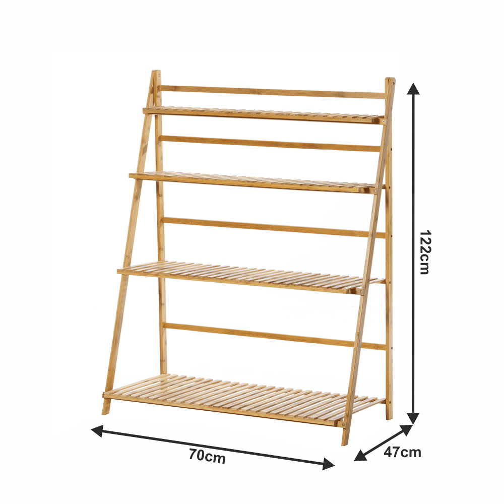Materiál: bambus Barva: bambus Rozměry (ŠxHxV): 70x47x122 cm čtyři police Nosnost na polici: 10 kg Skládací Složený nezabere mnoho místa Jeden pár rukavic grátis Set ručního zahradního nářadí grátis Vhodný do interiéru i exteriéru Dodávané v demontu