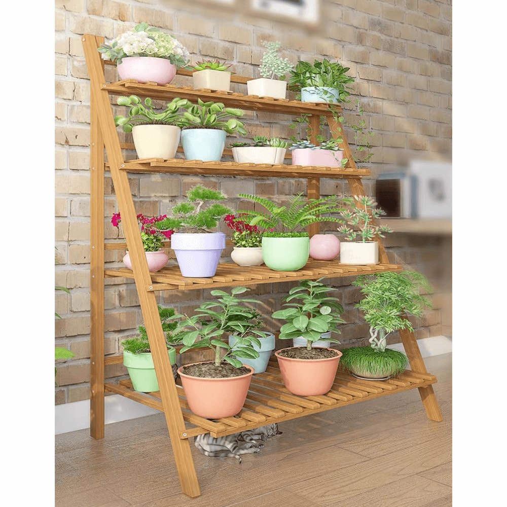 Materiál: bambus Barva: bambus Rozměry (ŠxHxV): 70x47x122 cm čtyři police Nosnost na polici: 10 kg Skládací Složený nezabere mnoho místa Jeden pár rukavic grátis Set ručního zahradního nářadí grátis Vhodný do interiéru i exteriéru Dodávané v demontu