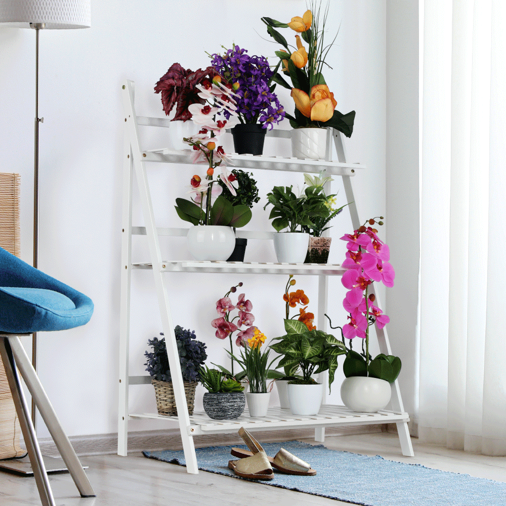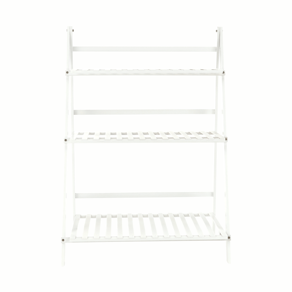 Materiál: bambus Barva: bílá Rozměry (ŠxHxV): 70x40x96 cm Nosnost na polici: 10 kg tři police Skládací Složený nezabere mnoho místa Jeden pár rukavic grátis Set ručního zahradního nářadí grátis Vhodný do interiéru i exteriéru Dodávané v demontu