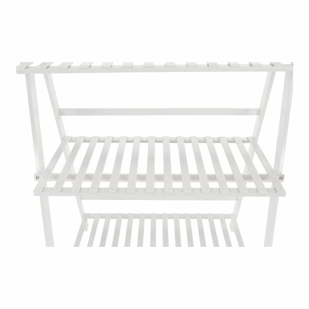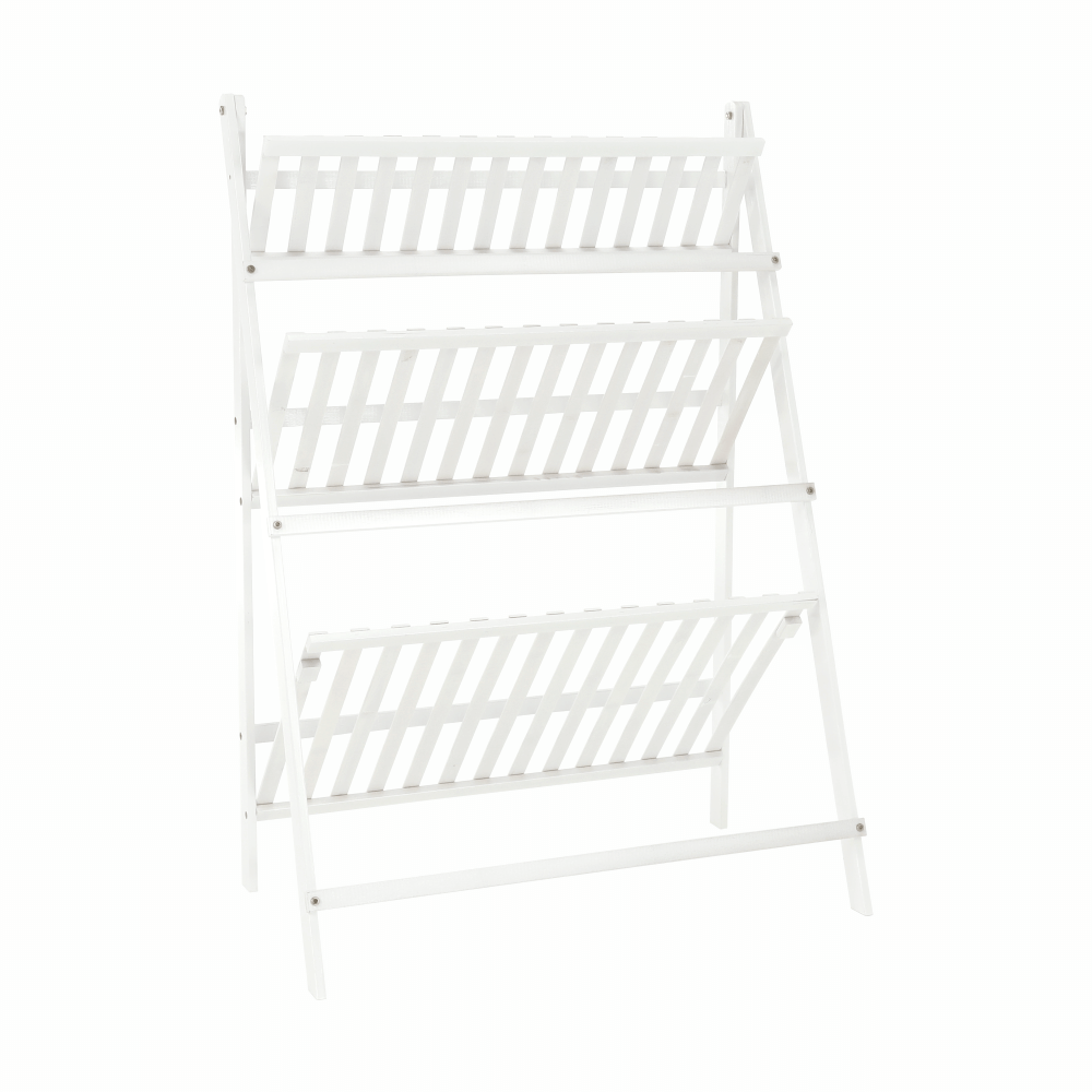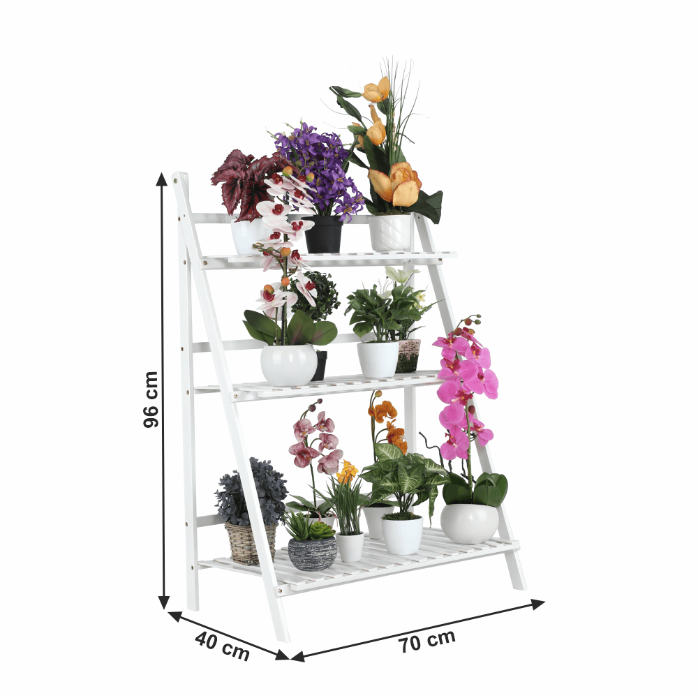 Materiál: bambus Barva: bílá Rozměry (ŠxHxV): 70x40x96 cm Nosnost na polici: 10 kg tři police Skládací Složený nezabere mnoho místa Jeden pár rukavic grátis Set ručního zahradního nářadí grátis Vhodný do interiéru i exteriéru Dodávané v demontu