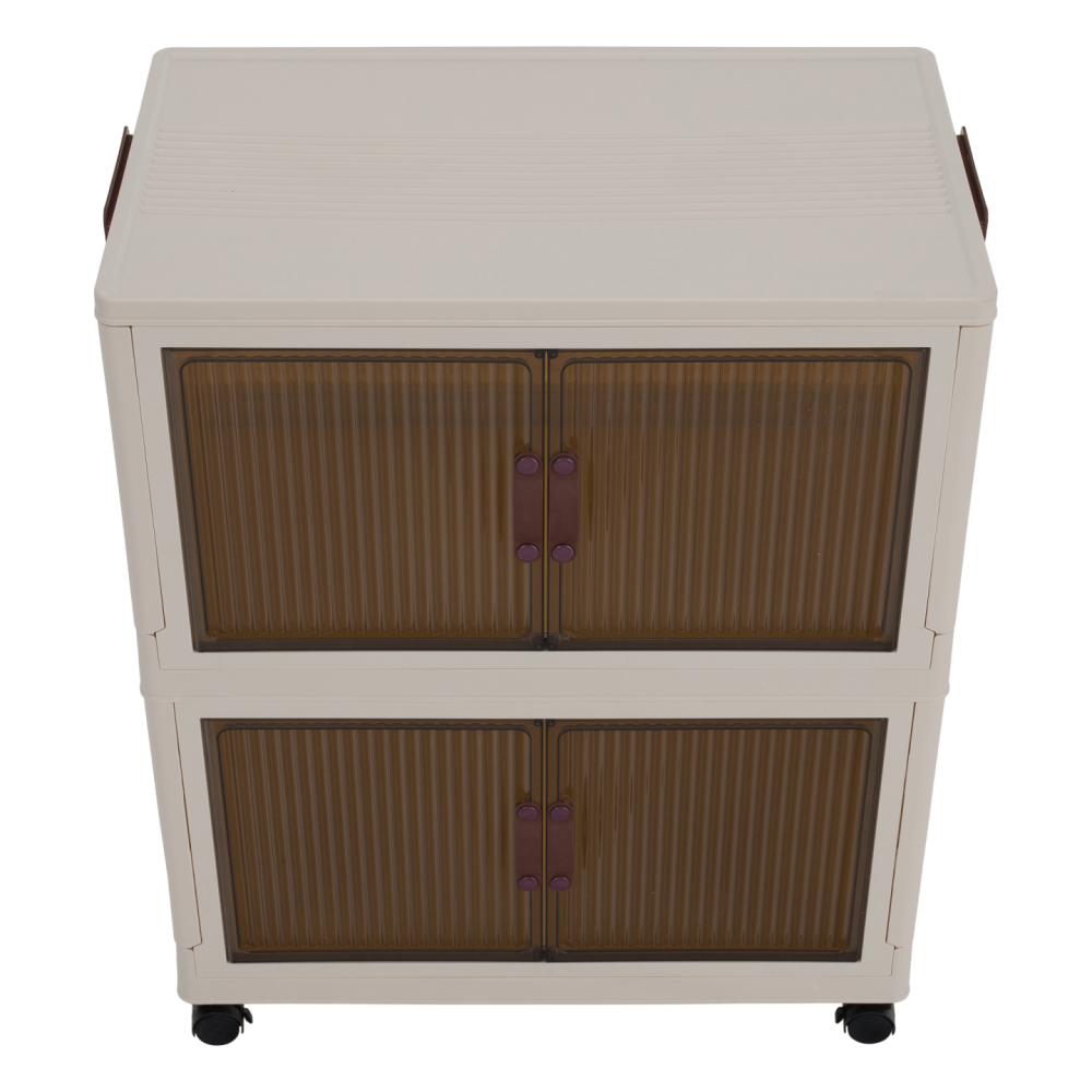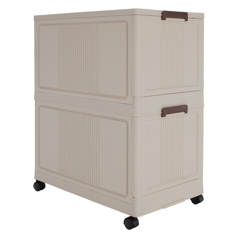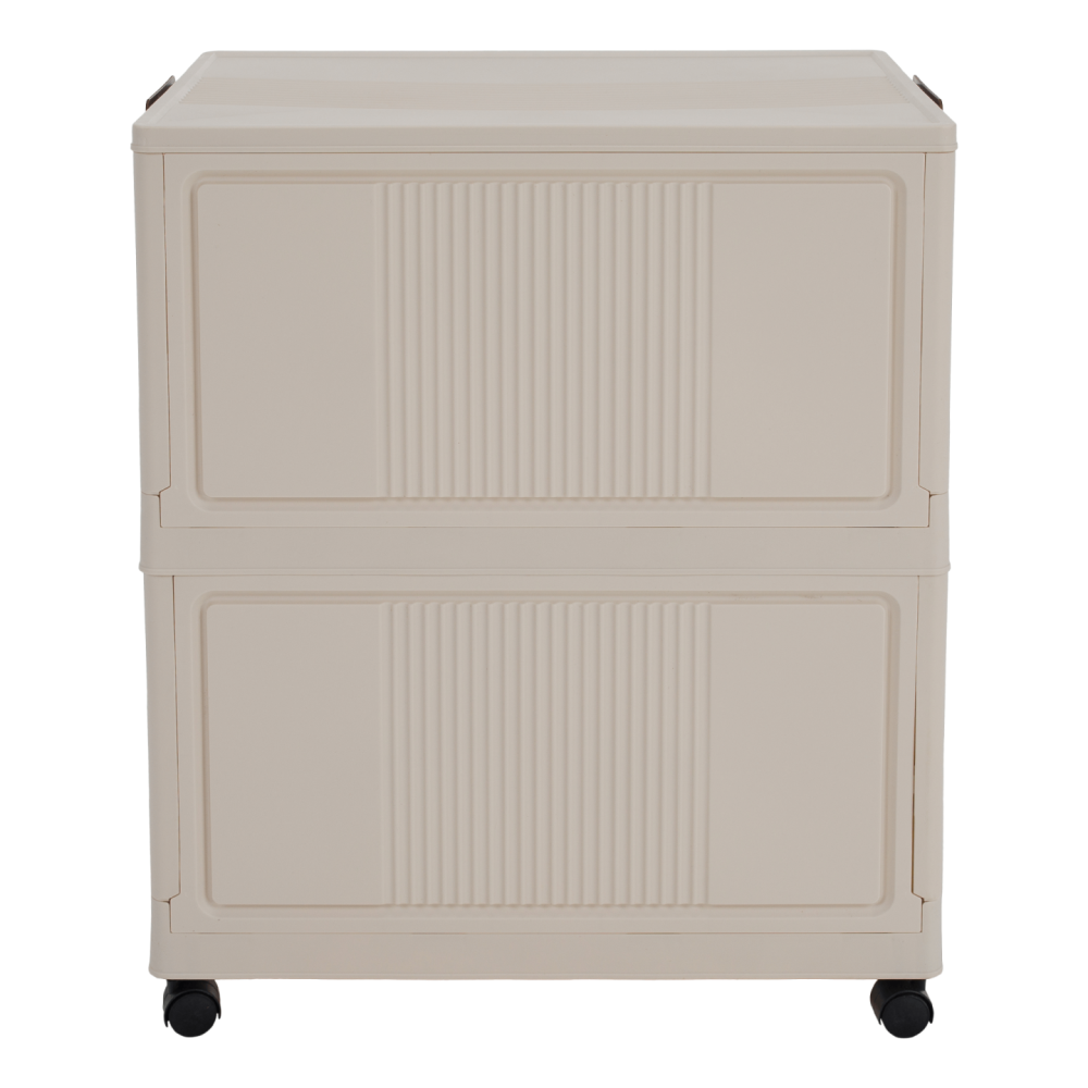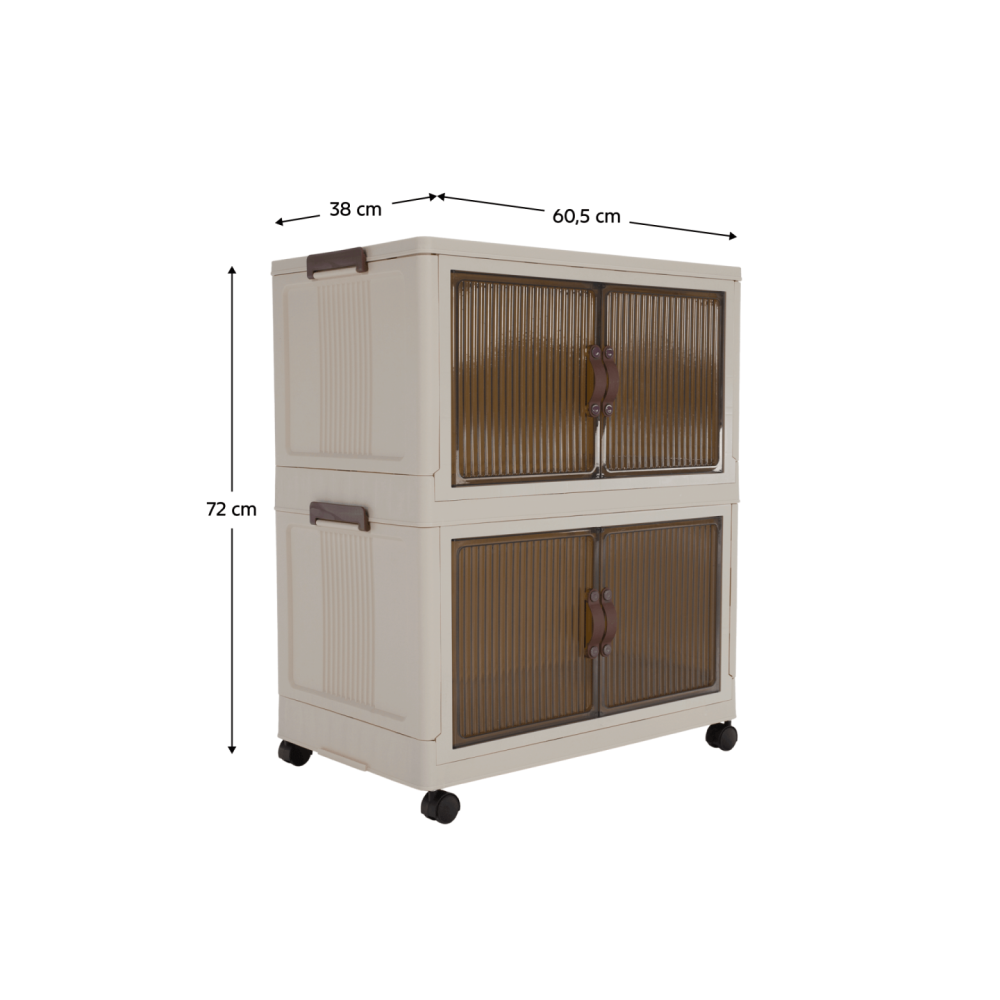 Skříňka je vybavena dvěma oddělenými úložnými prostory s průhlednými vroubkovanými dvířky a úchytkami. Díky čtyřem otočným kolečkům je přemístění z místa na místo jednoduché a rychlé, přičemž kolečka jsou vybavena brzdou. POSA vám pomůže udržet věci přehledně uspořádané a vždy na dosah, čímž přispívá k lepší organizaci a pořádku ve vašem prostoru.