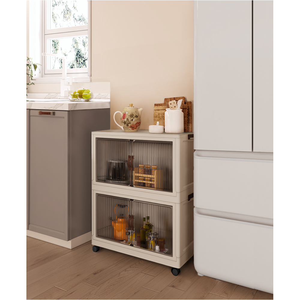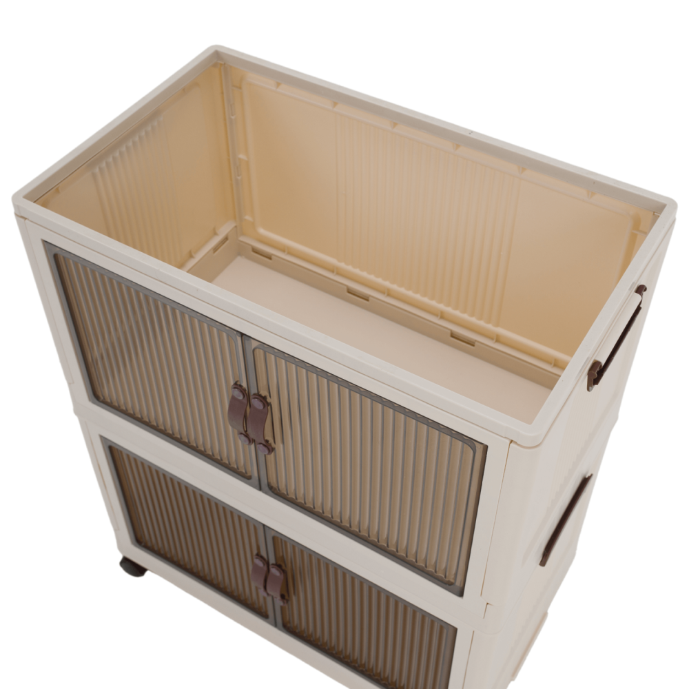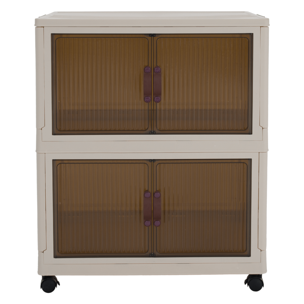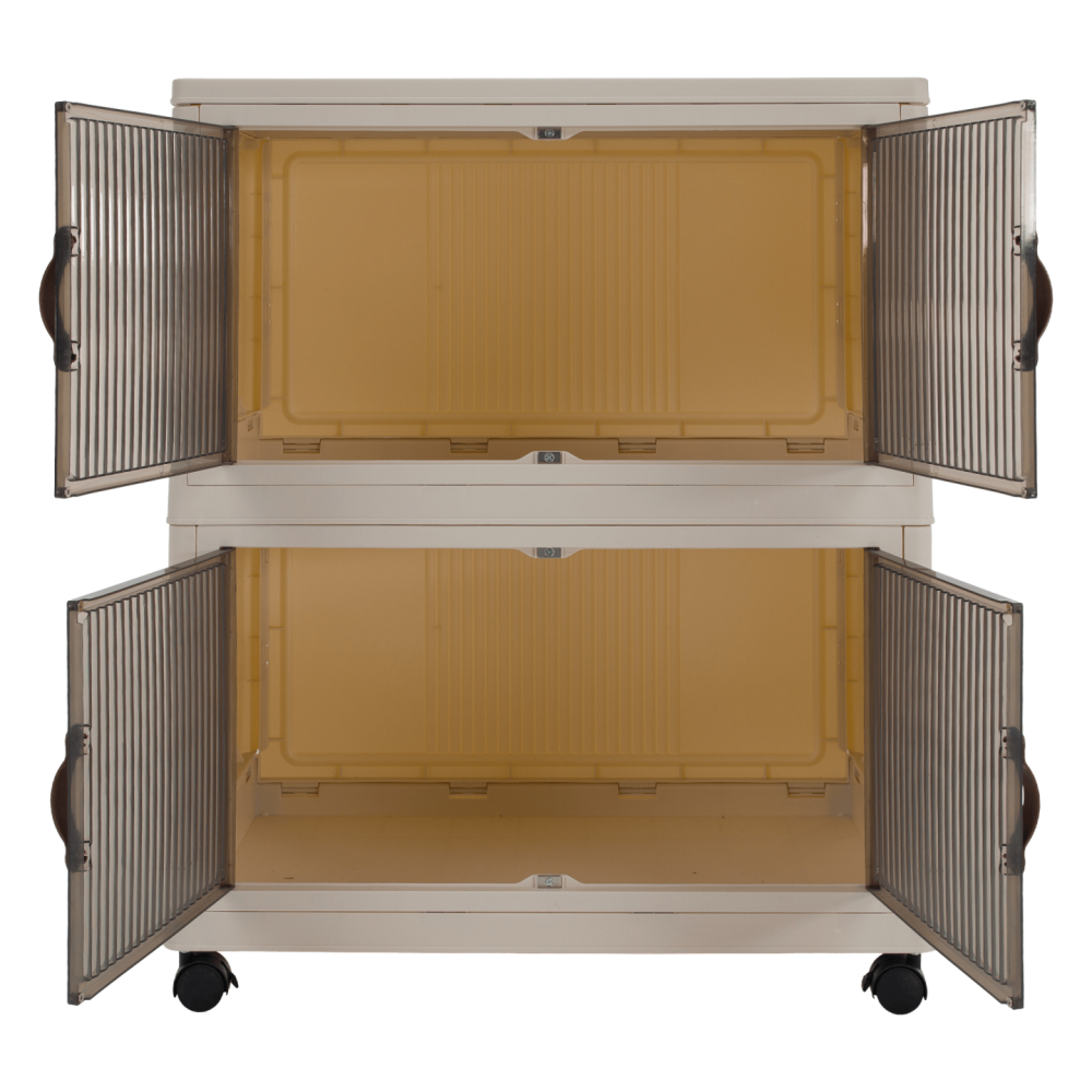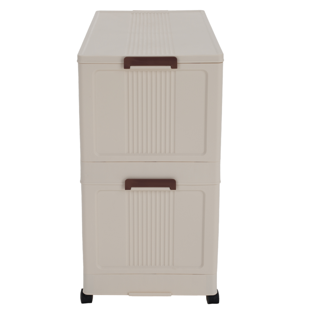 Skříňka je vybavena dvěma oddělenými úložnými prostory s průhlednými vroubkovanými dvířky a úchytkami. Díky čtyřem otočným kolečkům je přemístění z místa na místo jednoduché a rychlé, přičemž kolečka jsou vybavena brzdou. POSA vám pomůže udržet věci přehledně uspořádané a vždy na dosah, čímž přispívá k lepší organizaci a pořádku ve vašem prostoru.