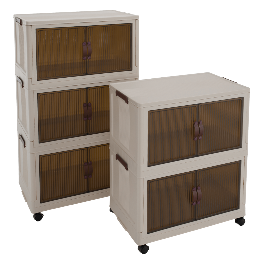 Skládací skříňka, bílá/hnědá, plast, POSA TYP 1