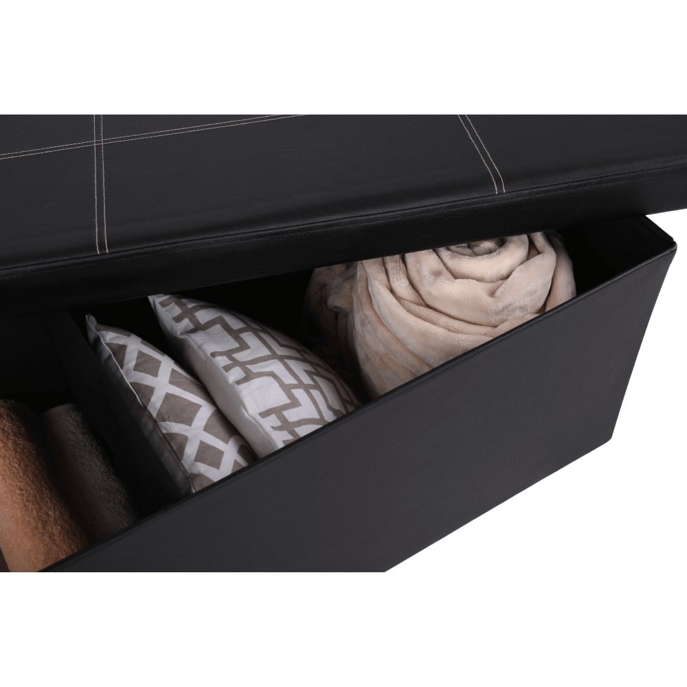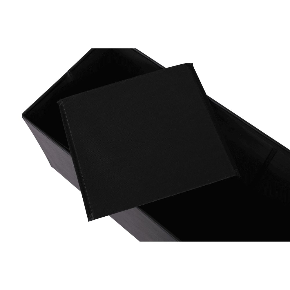 Skládací taburet s úložným prostorem ZAMIRA Oděruodolnost textilie podle testu Martindale: 87 000 oděrek Barva: černá Rozměry (Š x V x H): 114 x 38 x 38 cm Nosnost: 100 kg