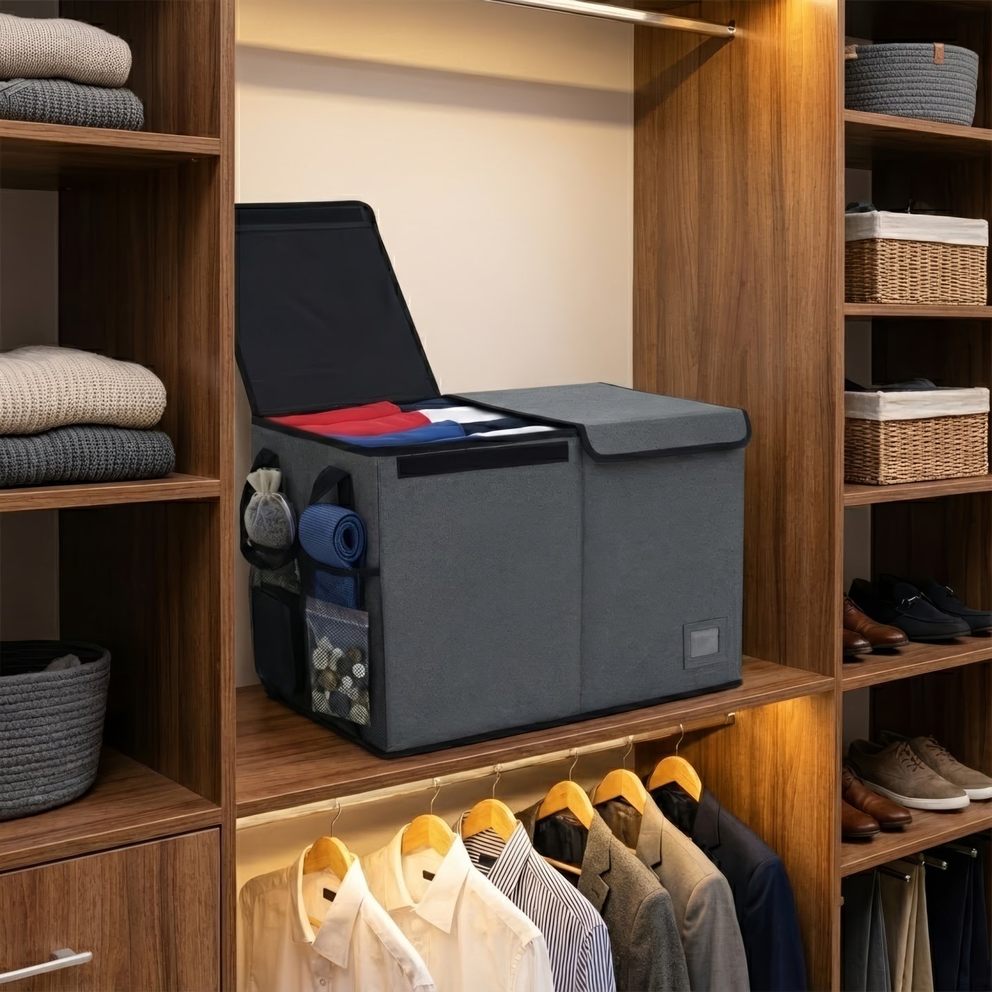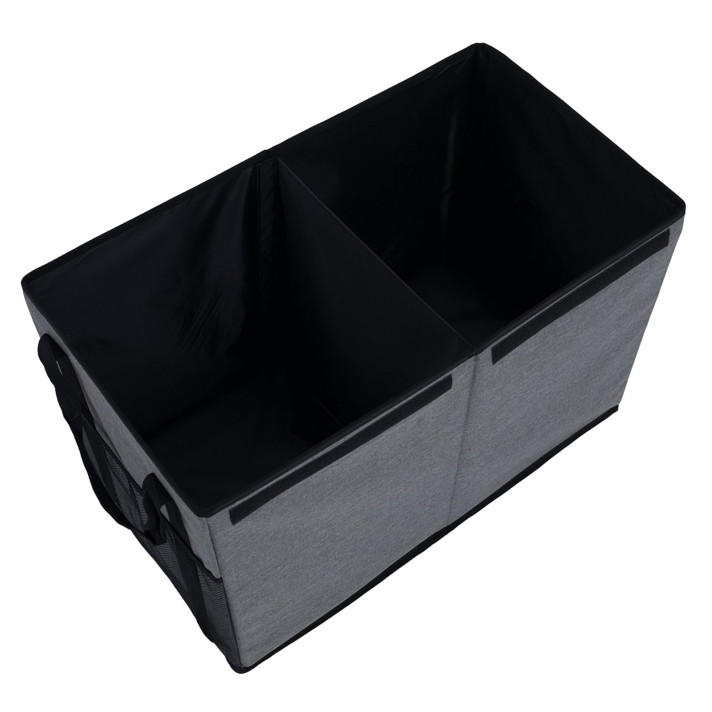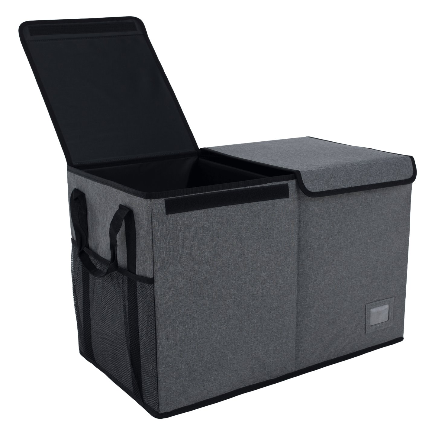 Materiál: látka Barva: šedá/černá Rozměry (ŠxHxV): 60x33x40 cm Všestranné využití Přenosný S oušky Skládací Jednoduché uskladnění Šetření místa Síťové kapsy na bocích Uzavíratelný Suchý zip pro zavírání Udržuje pořádek Pomáhá při organizaci Praktický Neprat, nebělit, nežehlit, nečistit chemicky, nesušit v sušičce