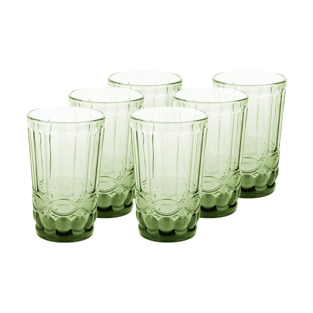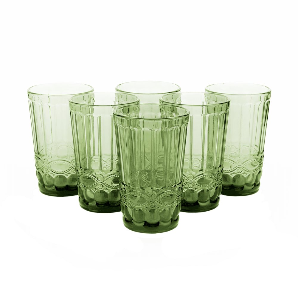 Sklenice na vodu, set 6 ks, 350 ml, zelená, vintage, FREGATA TYP 6